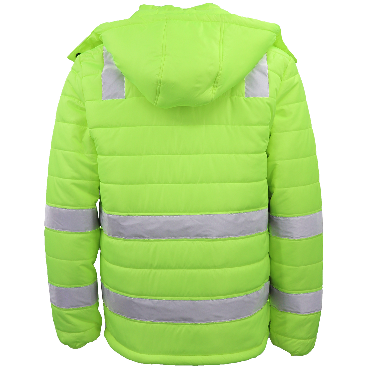 • Enhance your safety and comfort with our High-Visibility Puffer Jacket. This jacket is designed with your needs in mind, featuring reflective tape and a removable hood for added versatility.