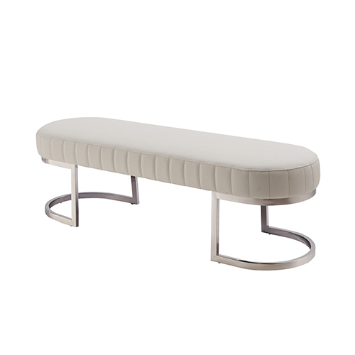 Hilda Bench Chair Air Leather Padded Upholstered Seat Polished Stainless Steel Feet