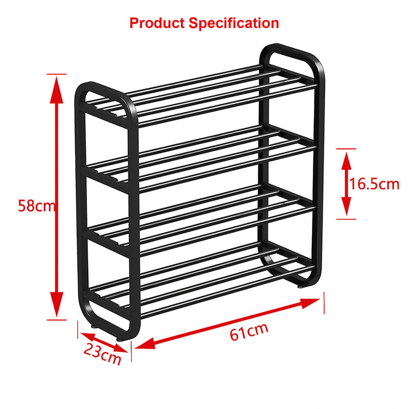 - Streamline your entryway and keep your shoes neatly arranged with the 4-Layer Shoe Rack Organizer. Designed to save space while offering durable support, this compact rack is ideal for homes, apartments, or dorms needing quick and easy footwear organization.