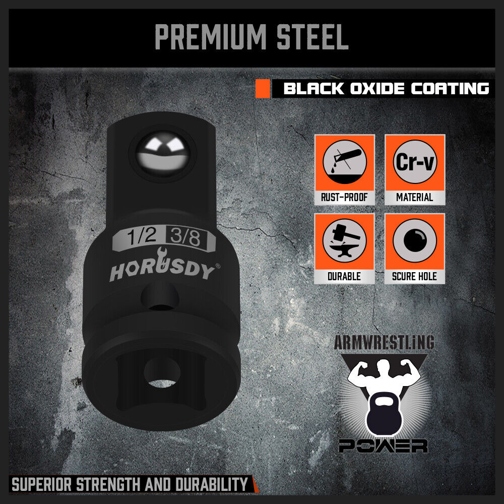- HIGH MATERIAL:This impact adapter reducer set is constructed of heavy duty drop forged and heat treated chrome vanadium steel.