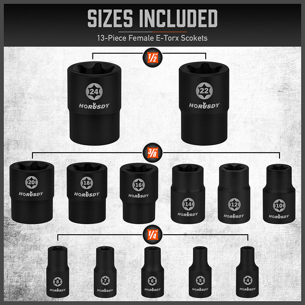 HORUSDY 66Pcs Torx Bit Socket Female External Socket Set Impact Adapter Socket