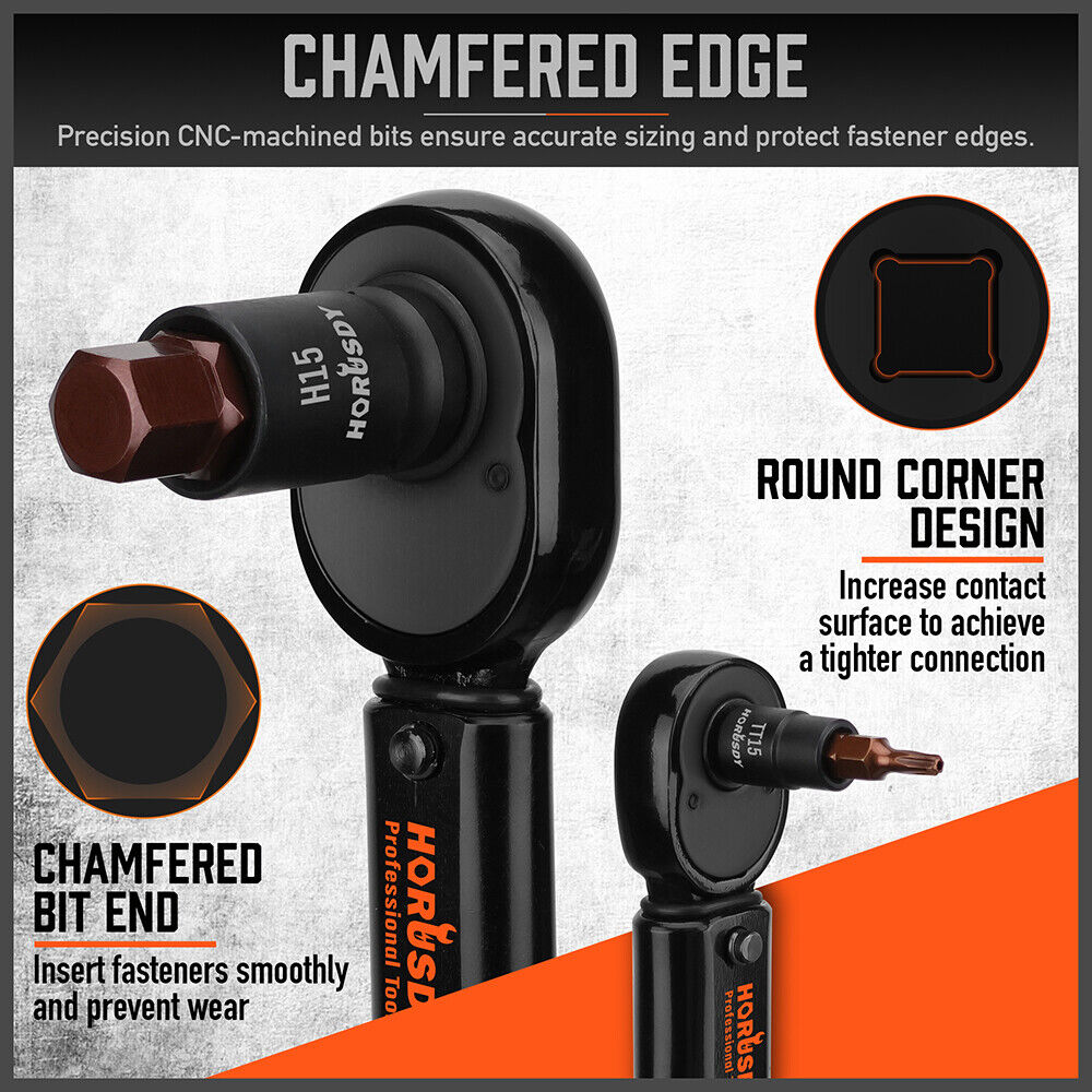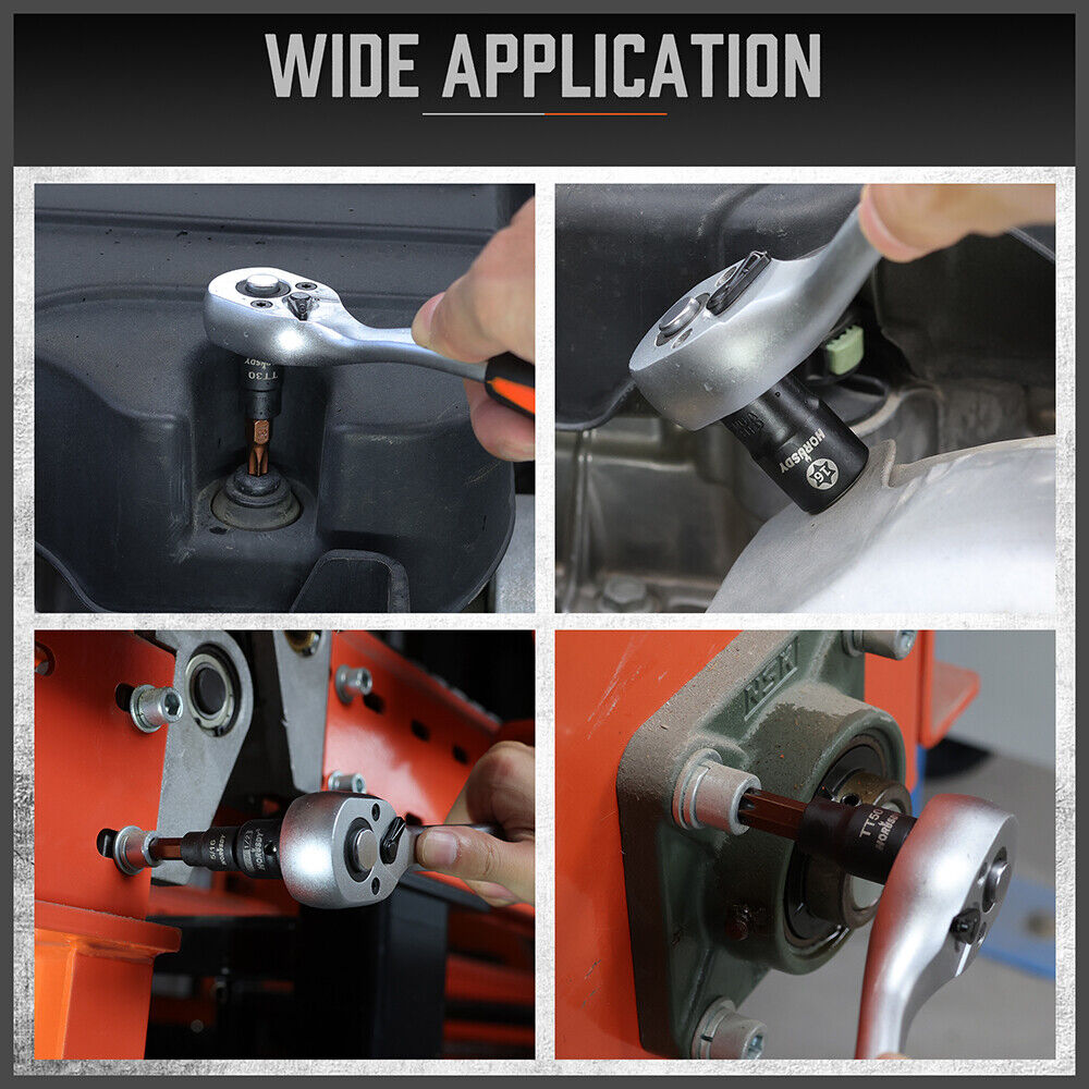 VERSATILE COMPATIBILITY– Perfect for use with manual torque tools, our Torx/Star bit set includes all necessary sizes for bicycles, cars, appliances, lawn equipment, machinery, and any other tasks.