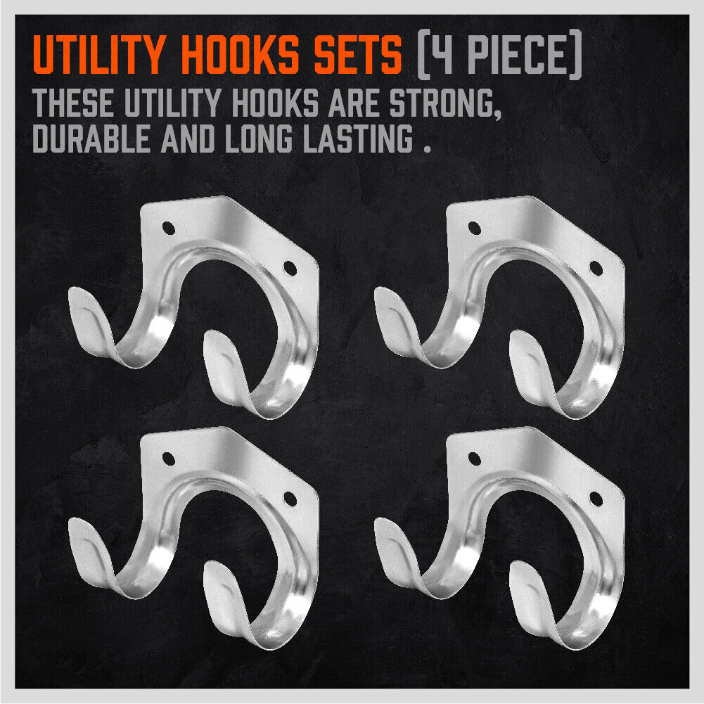 19-PIECES INCLUDING– 15Pcs SPRING GRIPS 4Pcs U-UTILITY HOOKS 20 mounting screws. The installation is very easy and convenient, give your spades, brooms, mops, hammers, rakes, baseball bats and other items a good place to belong.