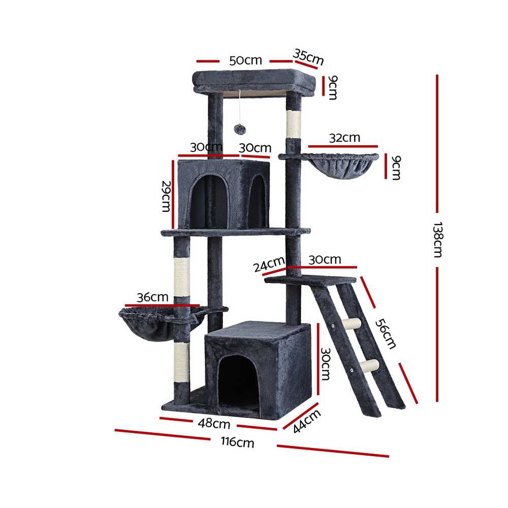 i.Pet Cat Tree Tower Scratching Post Scratcher 138cm Trees Condo House Grey