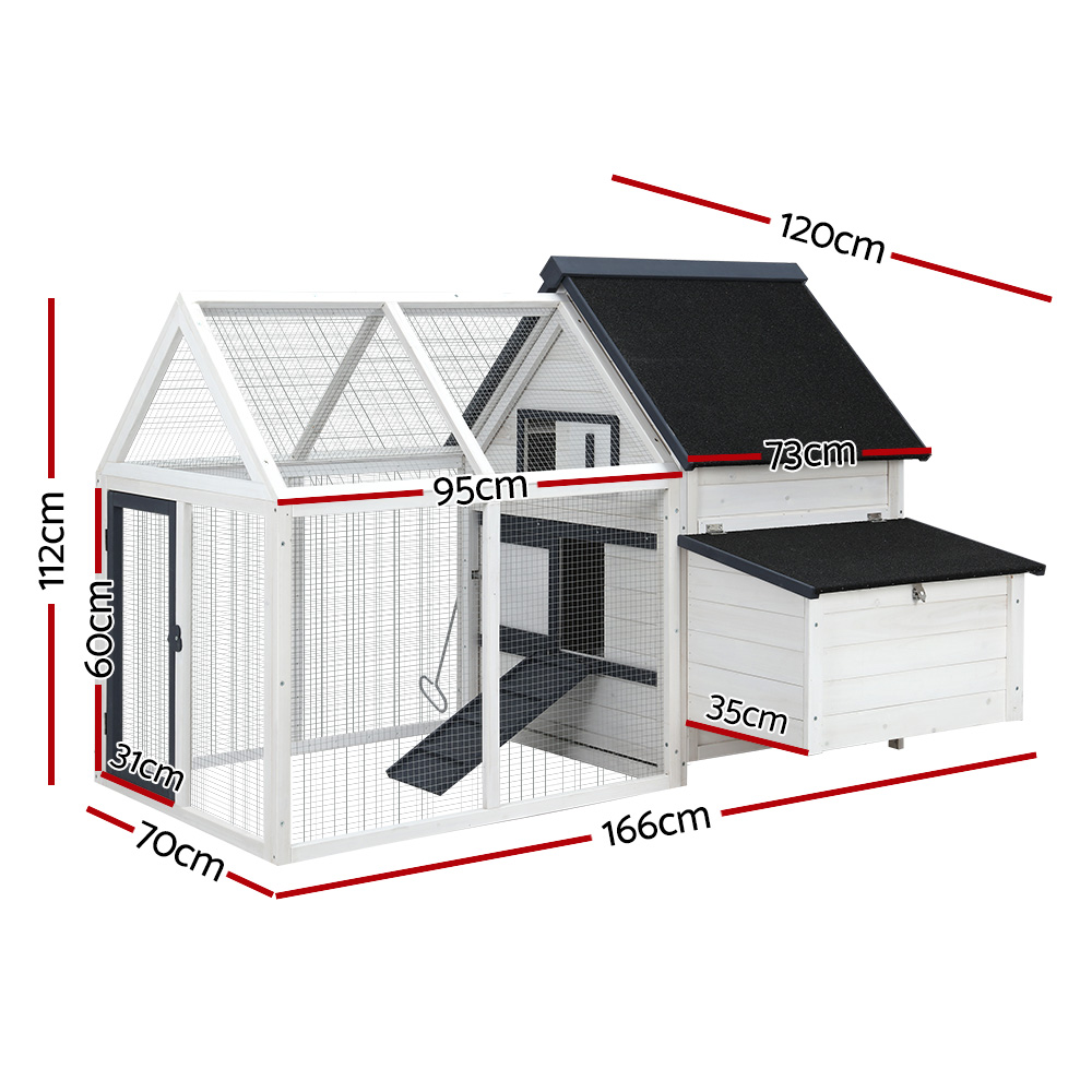 i.Pet Chicken Coop Rabbit Hutch 166cm x 120cm x 112cm Large Chicken Coop House Run Cage Wooden