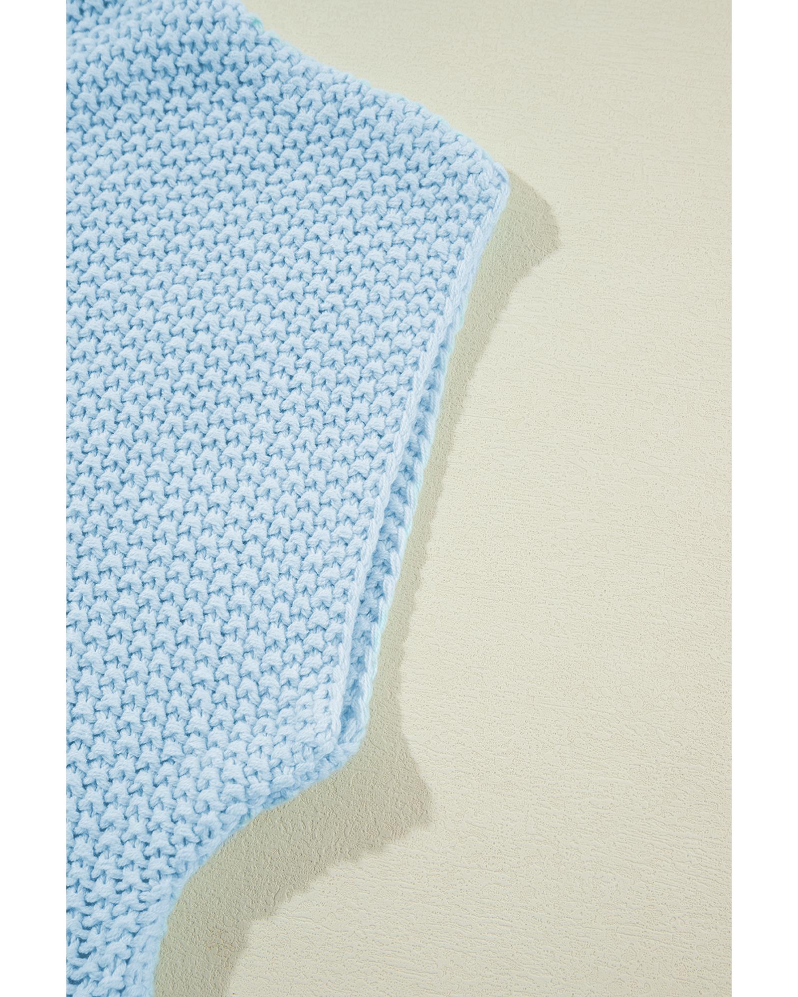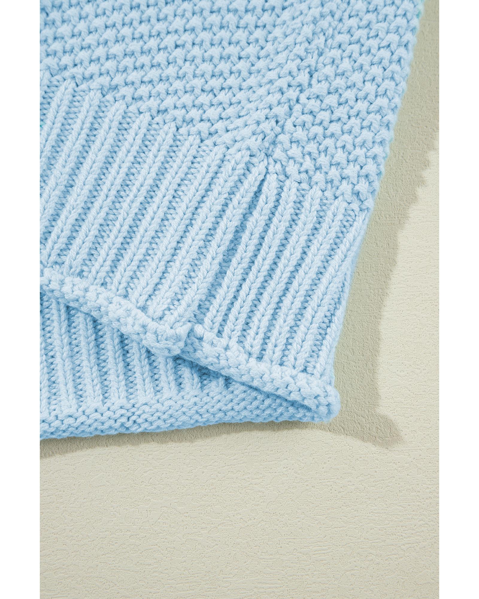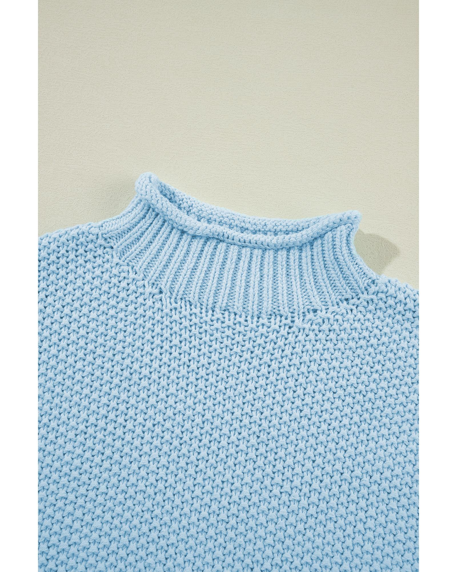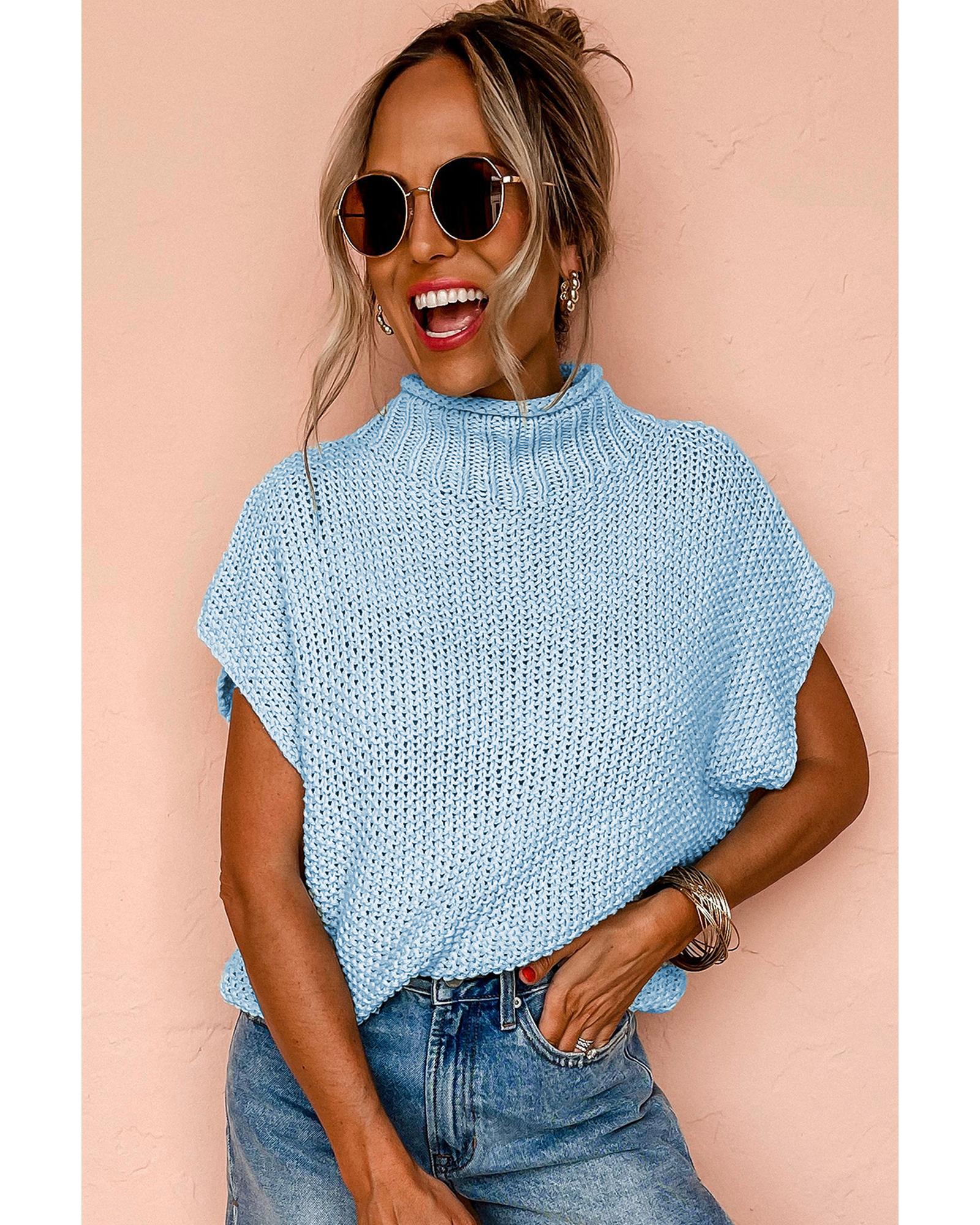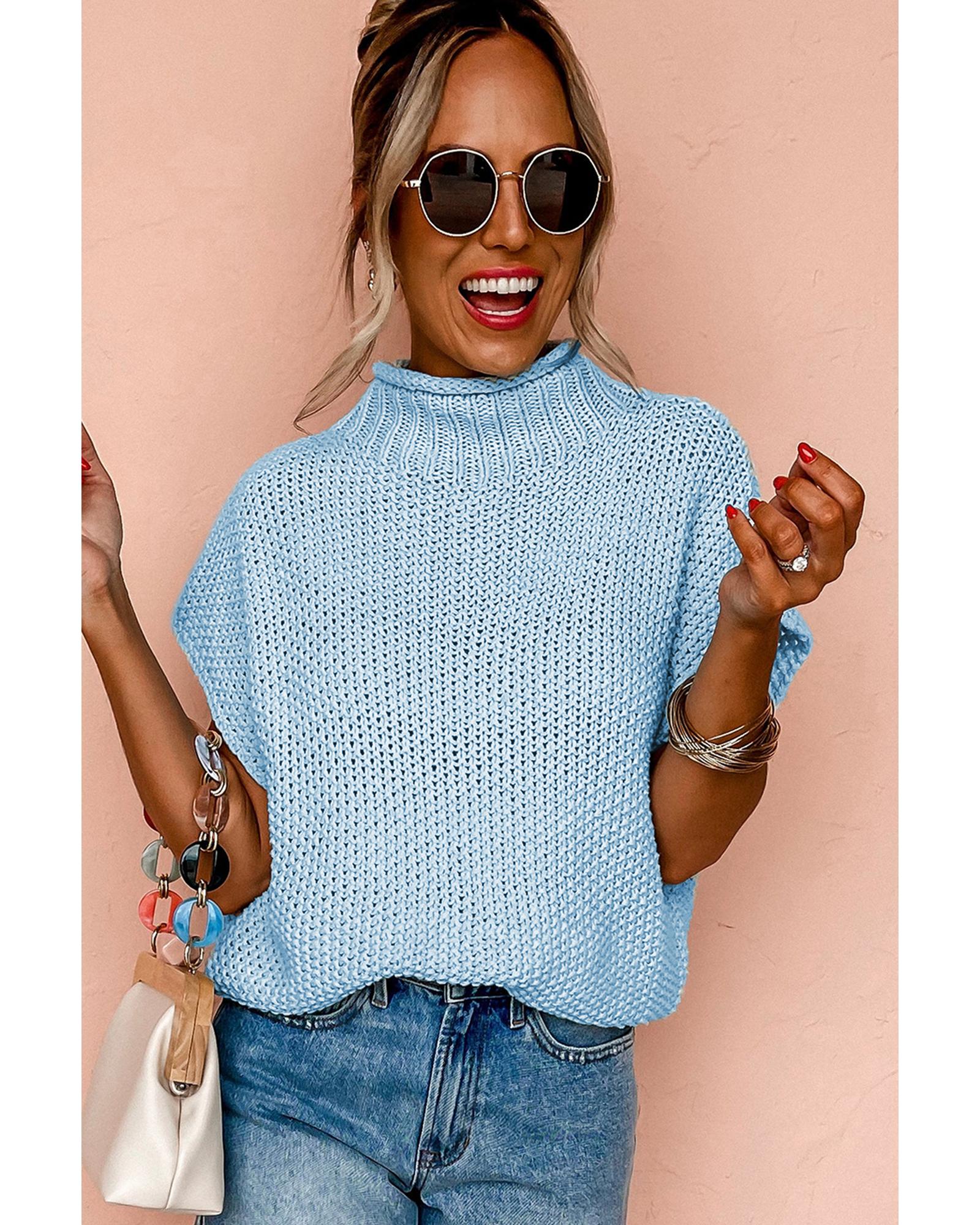 Iceland Blue High Neck Bat Short Sleeve Sweater – L