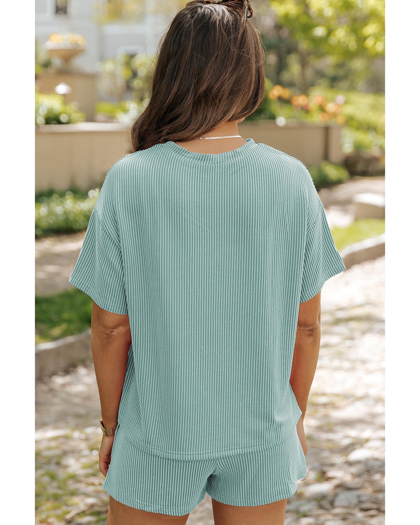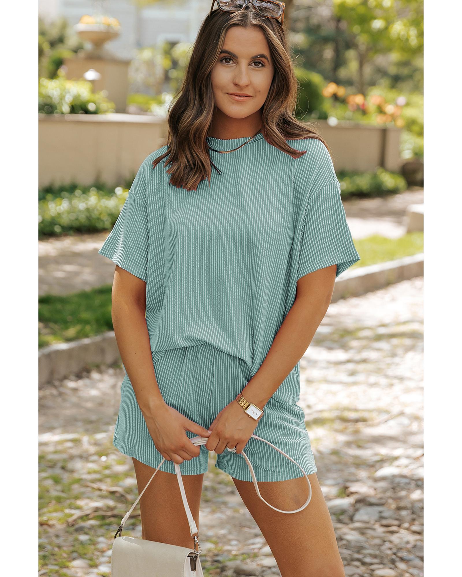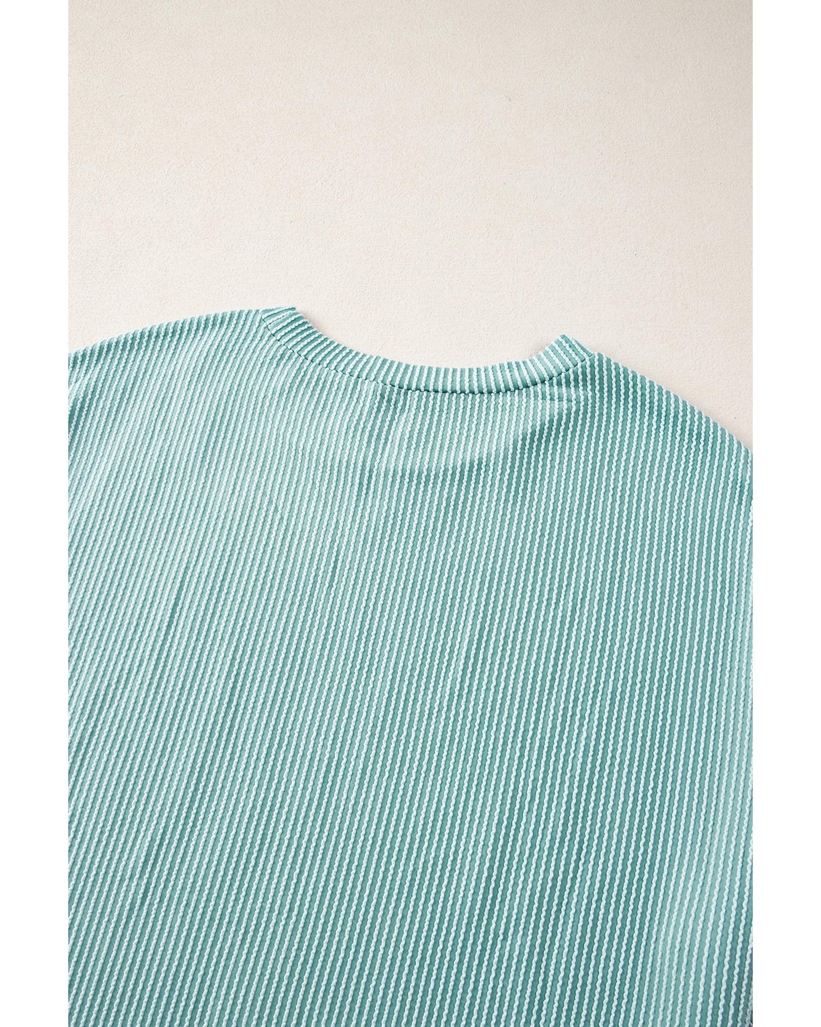 Iceland Blue Ribbed Textured Knit Loose Fit Tee and Shorts Set – XL