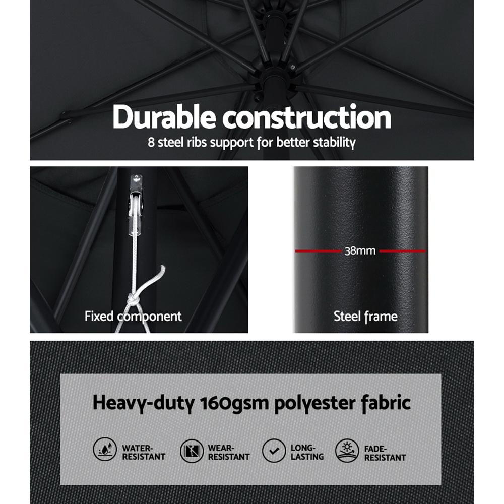 Instahut 3m Outdoor Umbrella Beach Pole Garden Patio Tilt Black