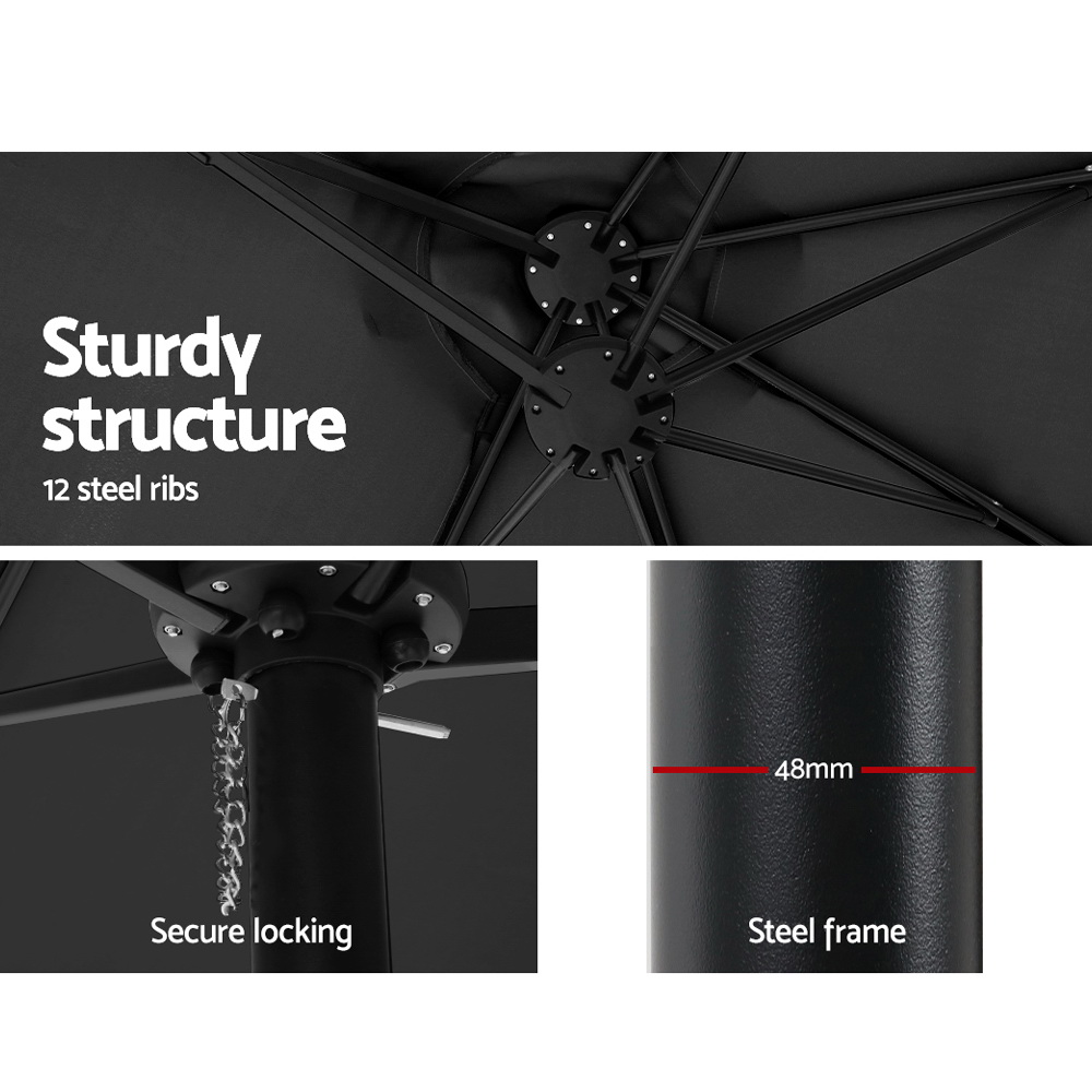 Instahut 4.57m Outdoor Umbrella Beach Pole Garden Tilt Black