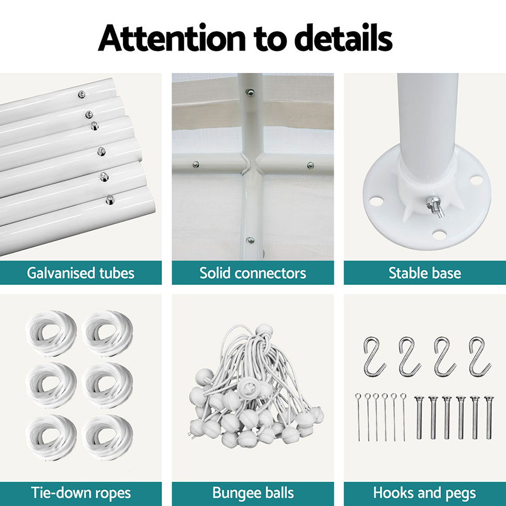 Protect your vehicle and create versatile outdoor spaces with the Instahut Carport. Constructed with heavy-duty powder-coated steel, this carport is both UV and water resistant, ensuring durability and strength. Its sturdy legs and struts provide robust support, while the simple setup allows you to have it ready in minutes. Ideal for cars, markets, camping, garage and yard sales, school events, and trade shows, the Instahut Carport is your reliable outdoor shelter solution.