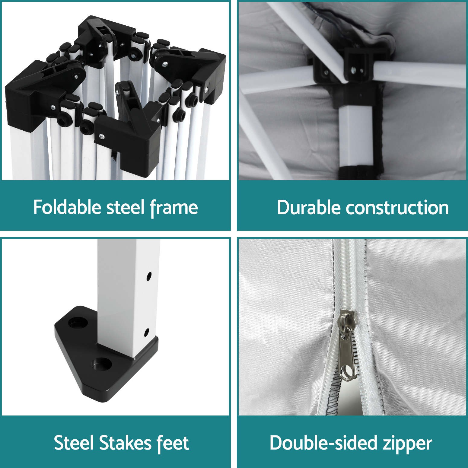 Instahut Gazebo 3x3 Pop Up Marquee Folding Tent Wedding Gazebos Camping Outdoor Shade Canopy Gray