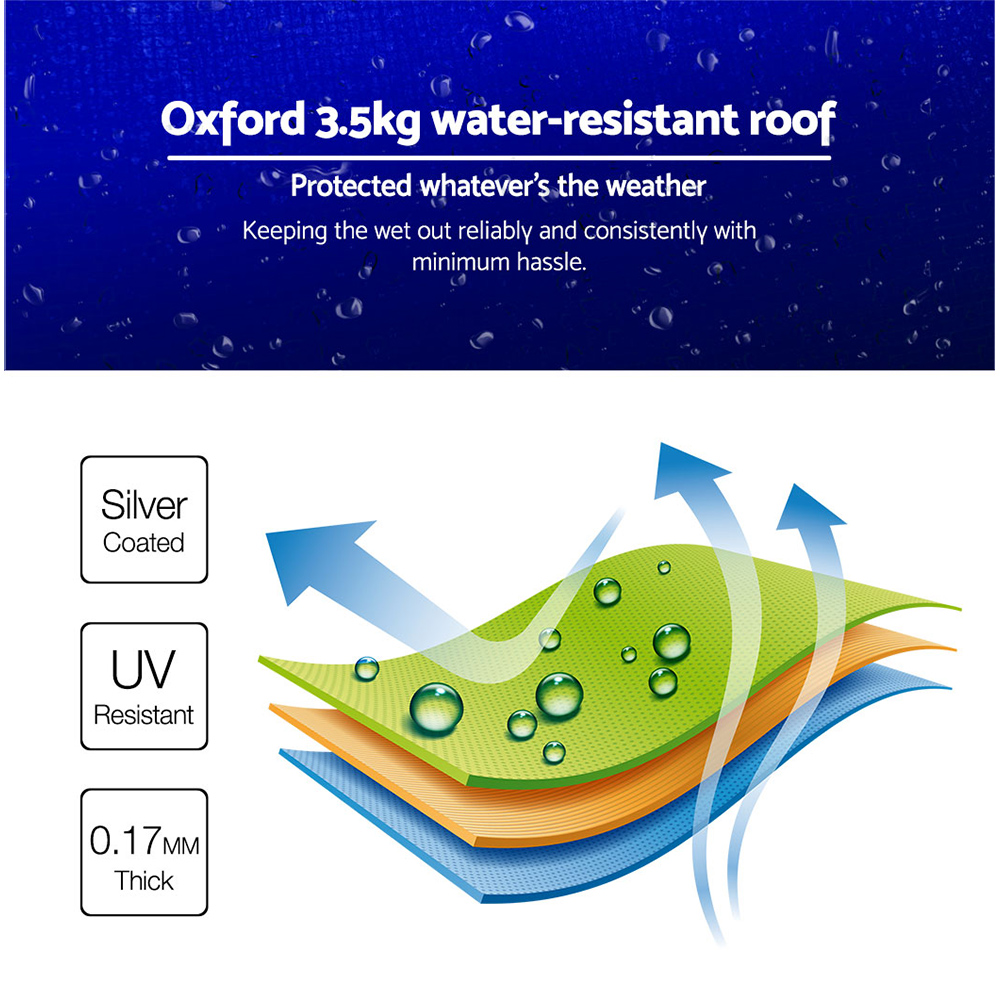 Featuring high density, long lasting PU coating oxford fabric with effective UV and water repellent treatments, this INSTAHUT 3X3 Pop Up Gazebo provides a lovely ground and canopy coverage of 300 x 300cm. It is perfect for all your upcoming outdoor activities, as a sunshade station as well as a shelter for unexpected rains.
