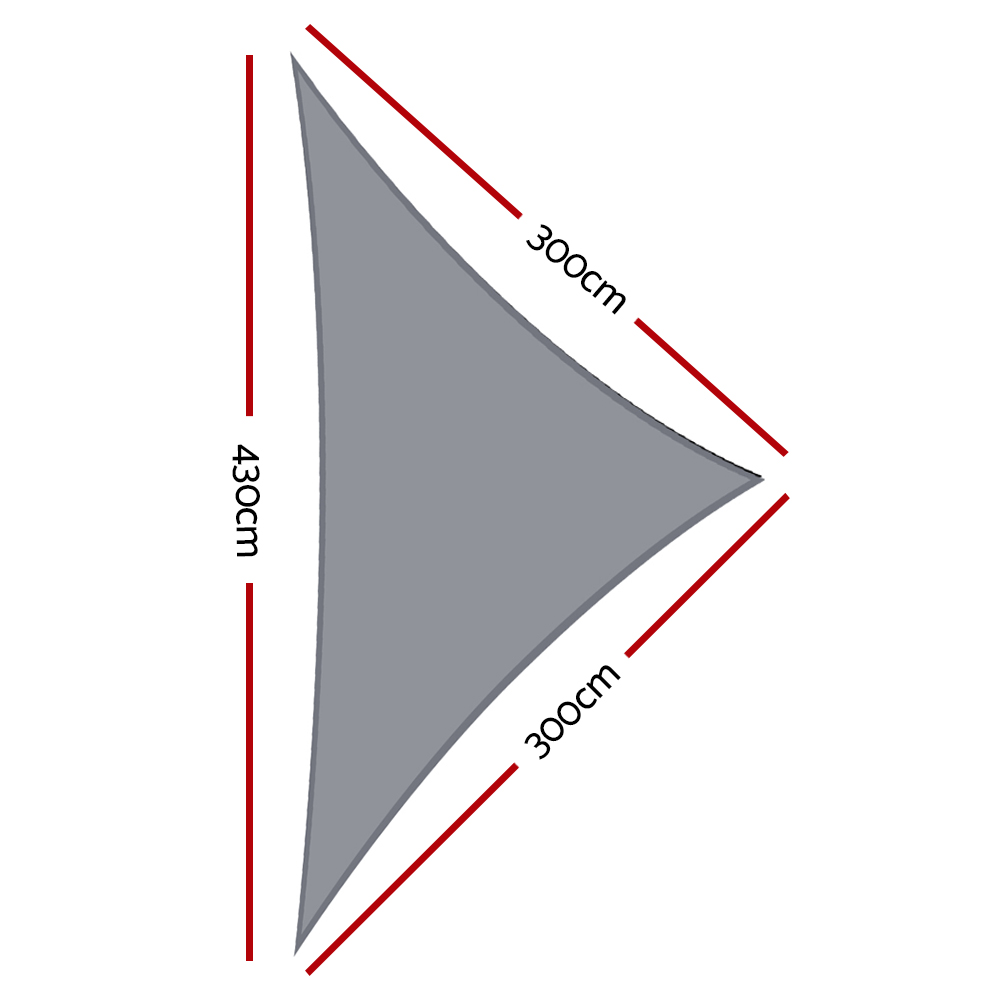 Instahut Shade Sail 3x3x4.3m Triangle 280GSM 98% Grey Shade Cloth