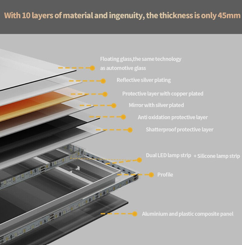 Features: Touch Sensor, Anti-Fog, Backlit Light, Led Strip