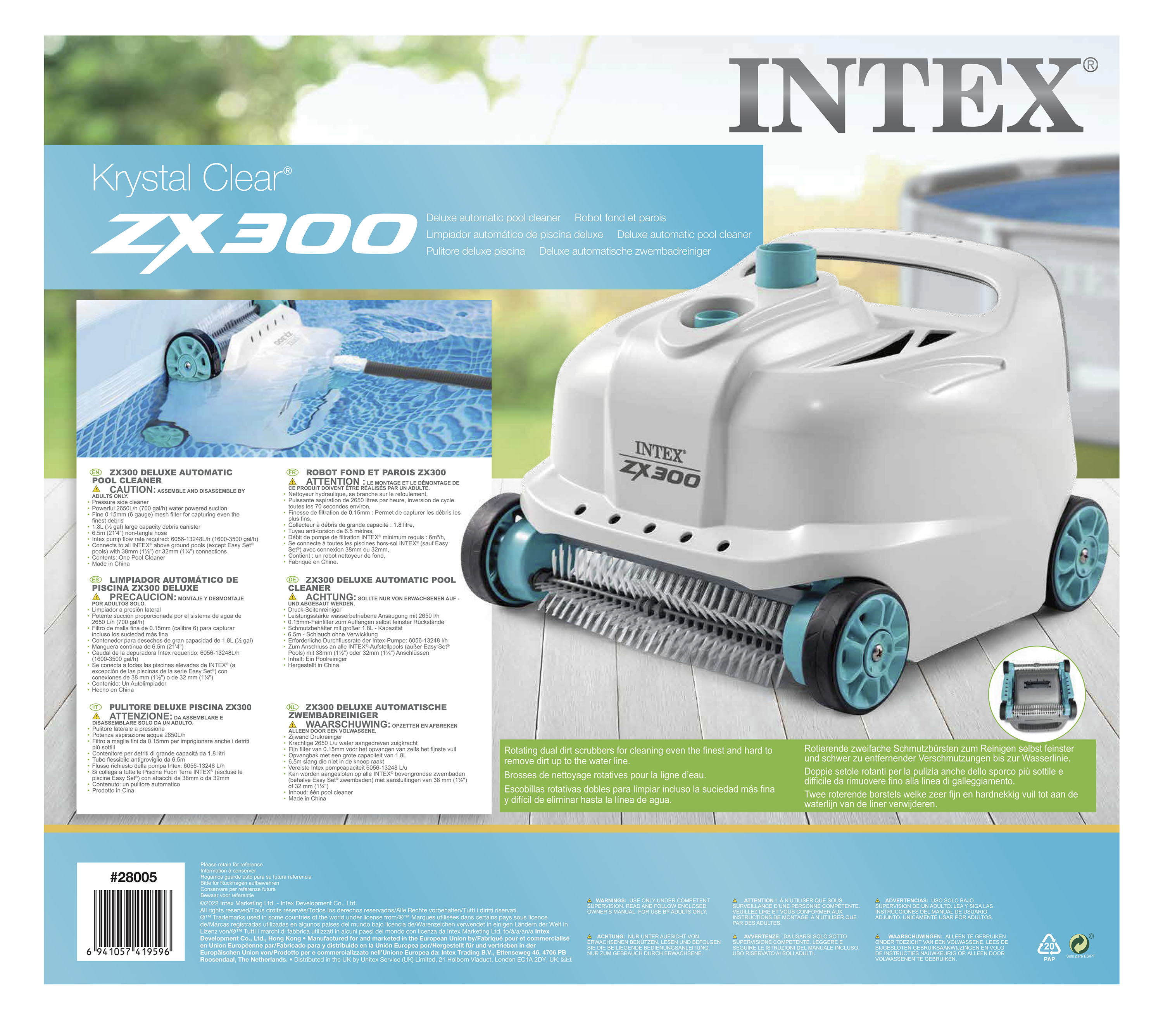 Efficiently get rid of debris in your pool with the water powered all-wheel drive that travels up to 7 meters per minute. With the perfect weight balance, ZX300 provides superior wall-climbing ability and in-water agility.