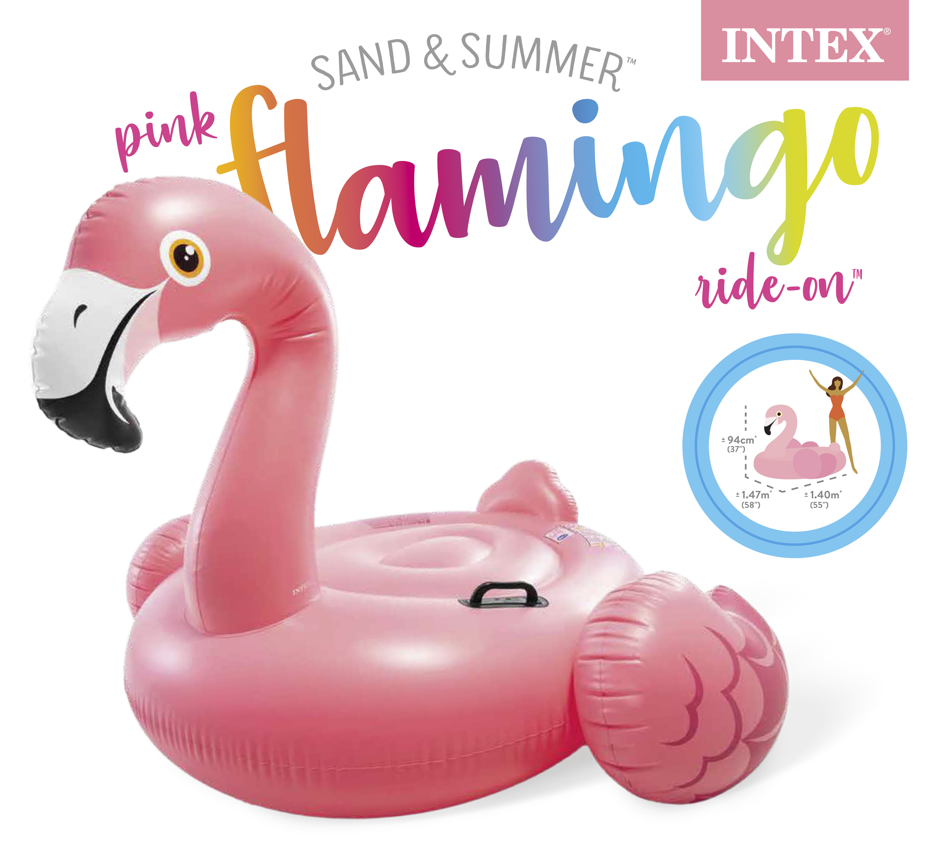 Create extra fun with Intex Flamingo Ride On float and wade your way to the pool! Kids will have so much fun with the flamingo design float.