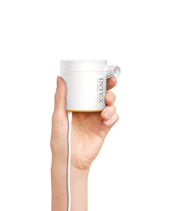 The INTEX� QuickFill USB Mini Pump is a sleek, portable air pump easily powered by a variety of USB-compatible power sources, thanks to its included USB-A-to-USB-C power cord (USB-A cube not included). Stow or transport this mini pump in the convenient carry bag that comes with it. It’s perfect for inflating pool floats and camping mats on the go.