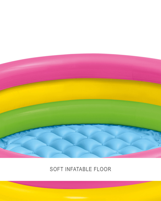 The Intex Sunset Glow Kiddie Pool is perfect for kids who like to stay cool in the pool all summer. Designed with 3 bright, colourful rings and a comfy inflatable floor, it sets up easily in the backyard for loads of splash-filled fun!