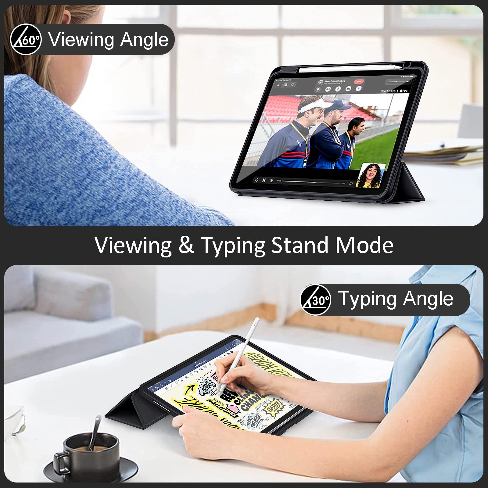 Designed with dual standing positions for users to adjust the iPad into different angles.