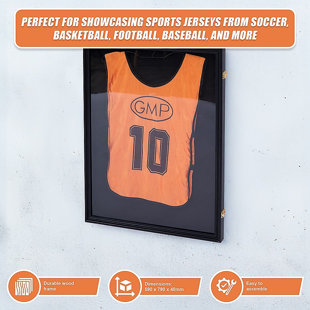 - Superior Protection: Crafted with a durable wood frame and UV-resistant, high-transparency PC panel to guard against fading and sunlight damage, ensuring your jerseys and collectibles remain in pristine condition. Our jersey frame display case measures 590 x 790 x 40mm and is tailor-made for displaying a variety of sports jerseys.