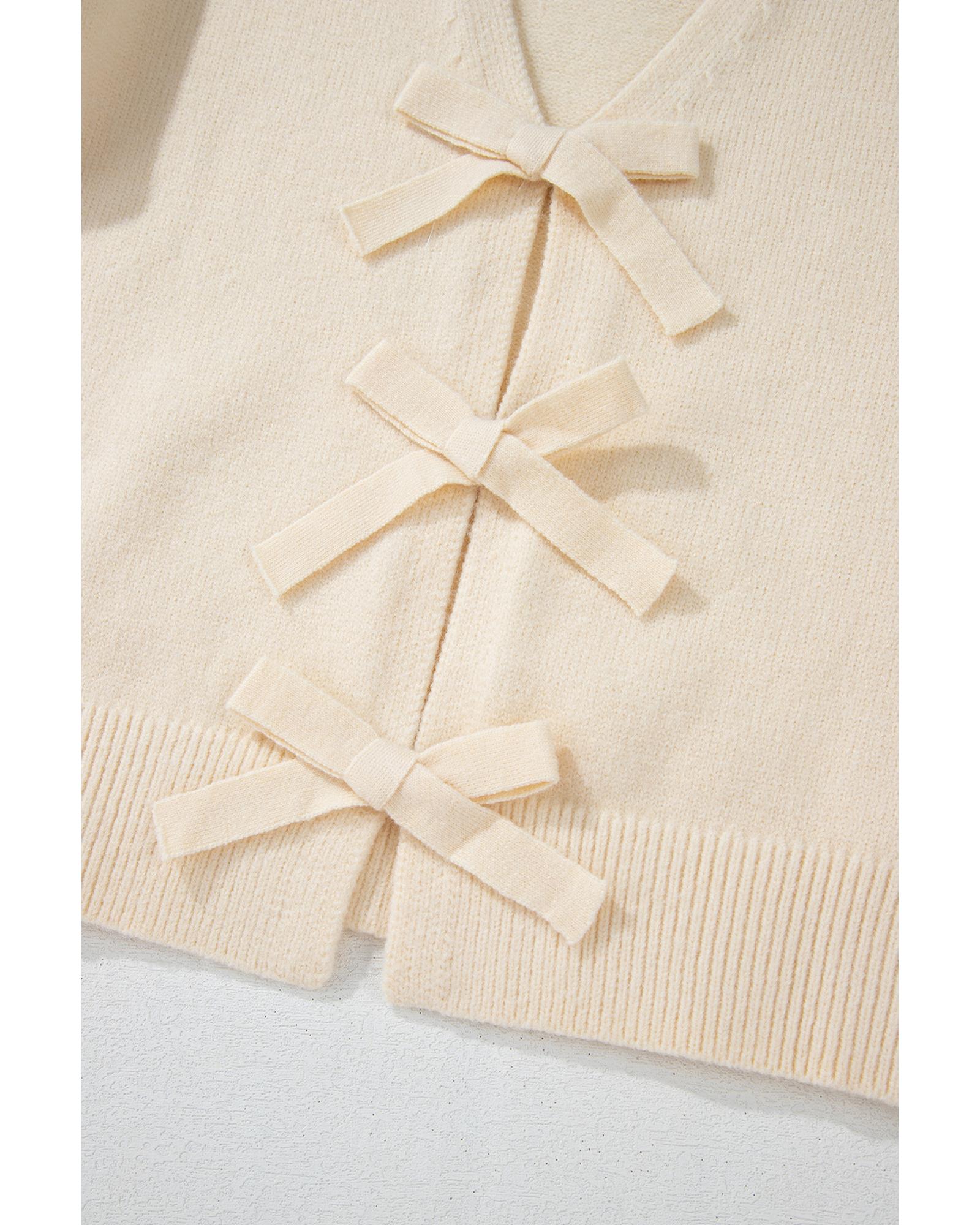 Jet Stream Bowknot Front Loose V Neck Knitted Cardigan – XL