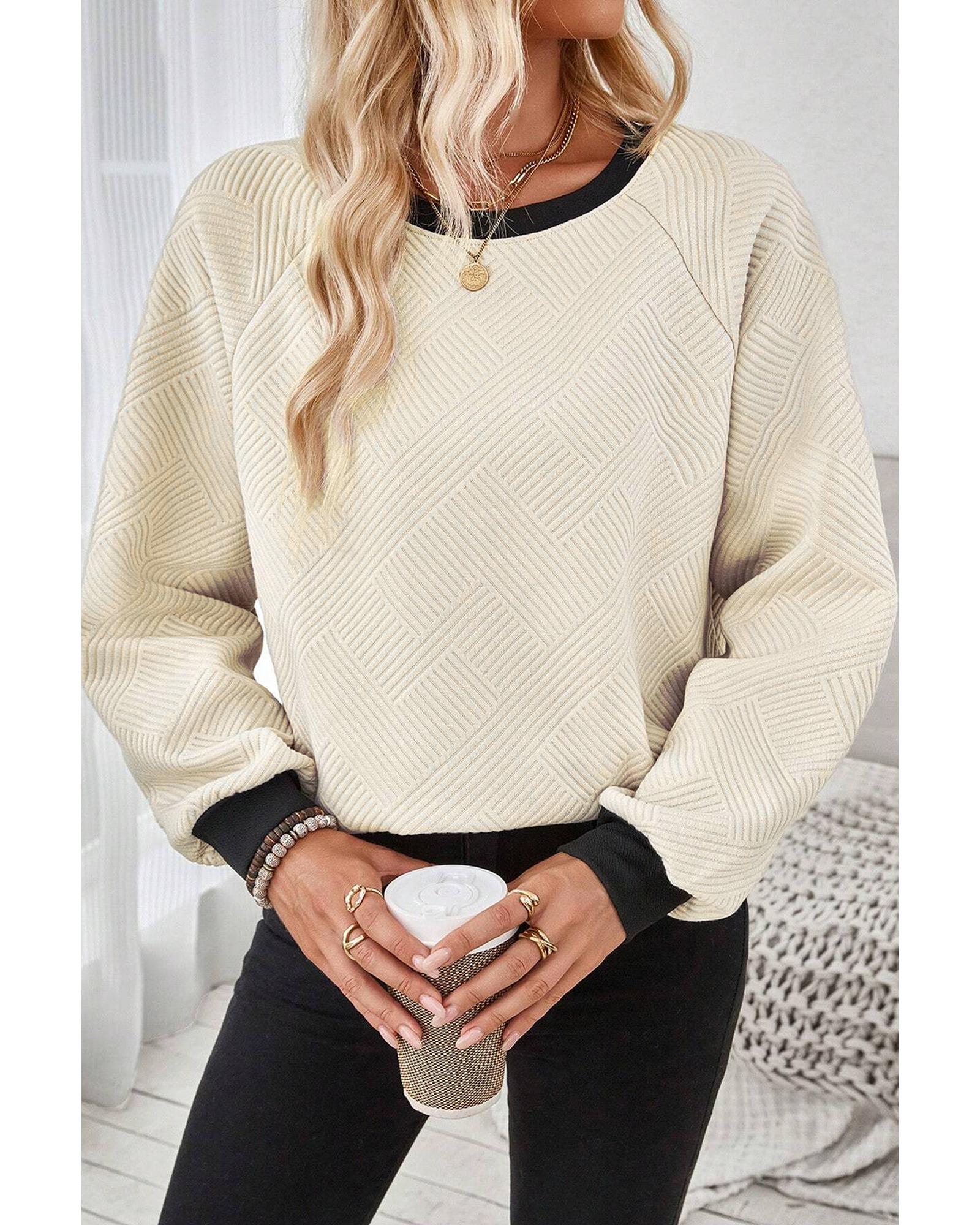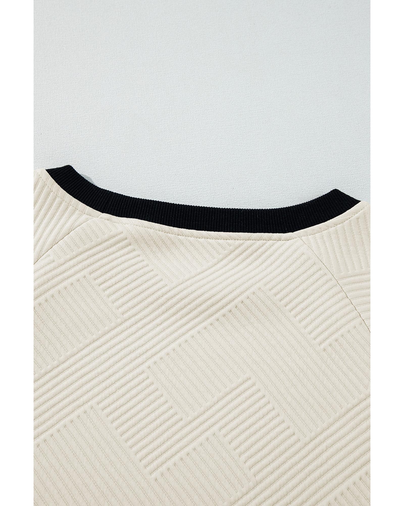 - Jet Stream Color Block Edge Raglan Sleeve Crew Neck Textured Top