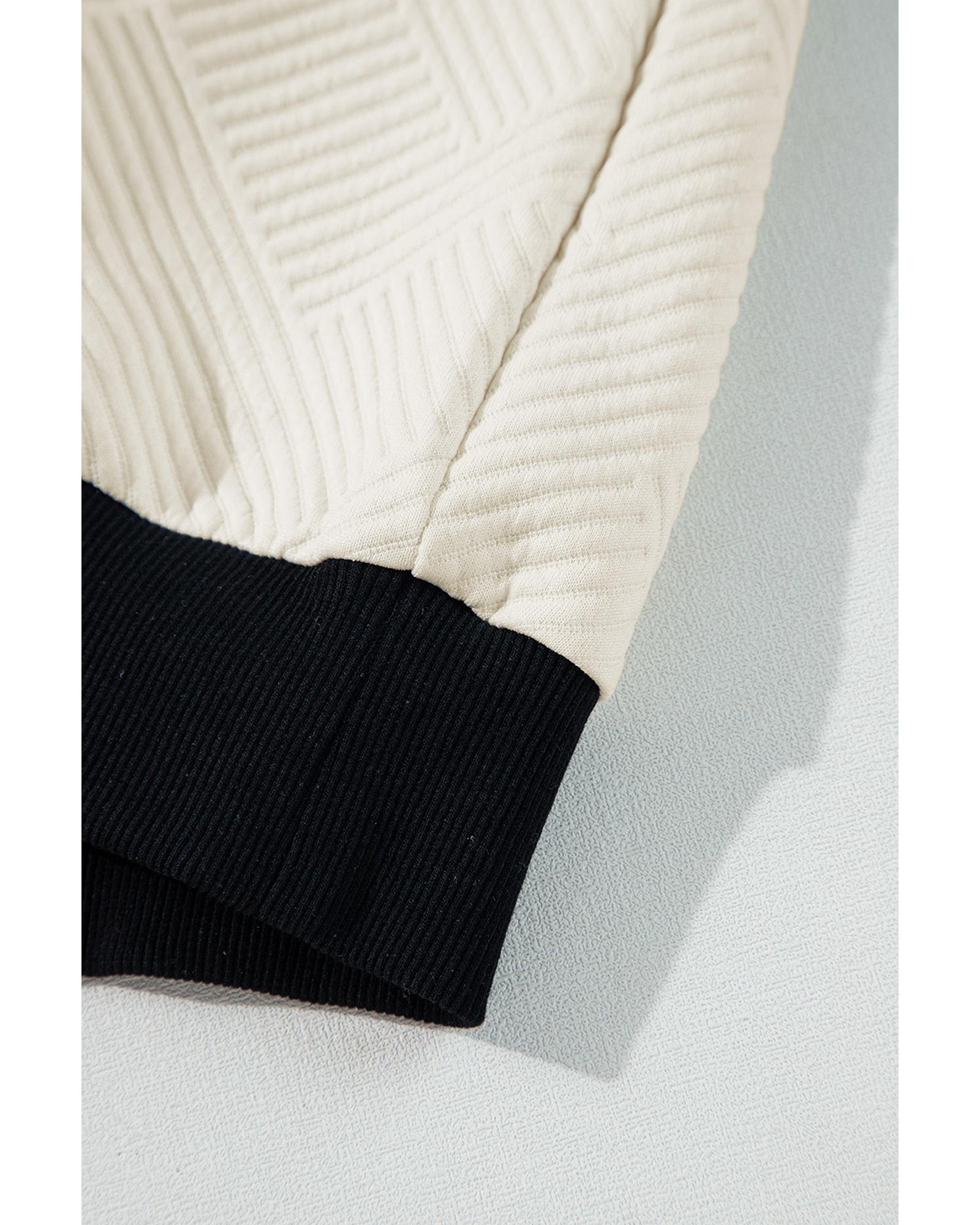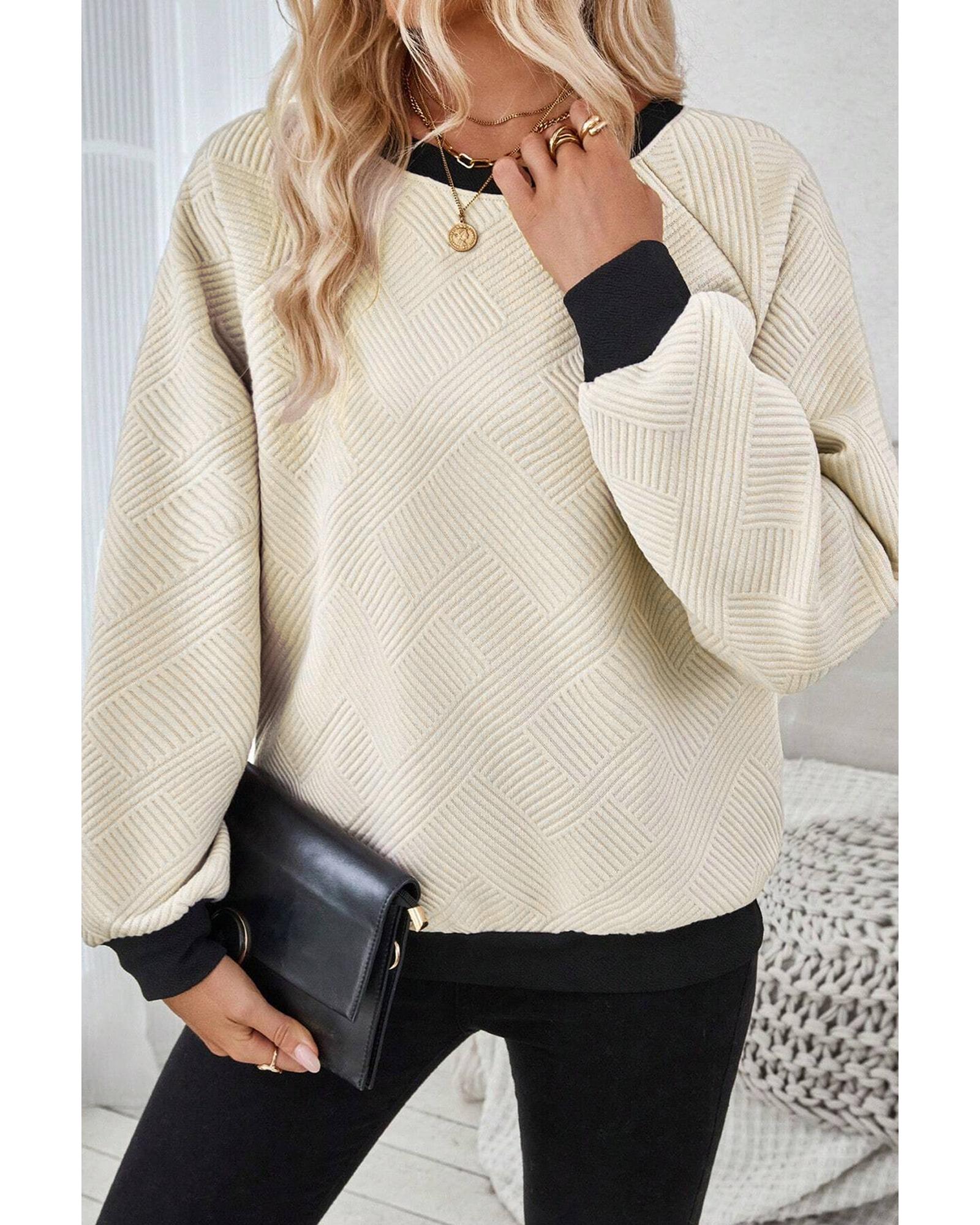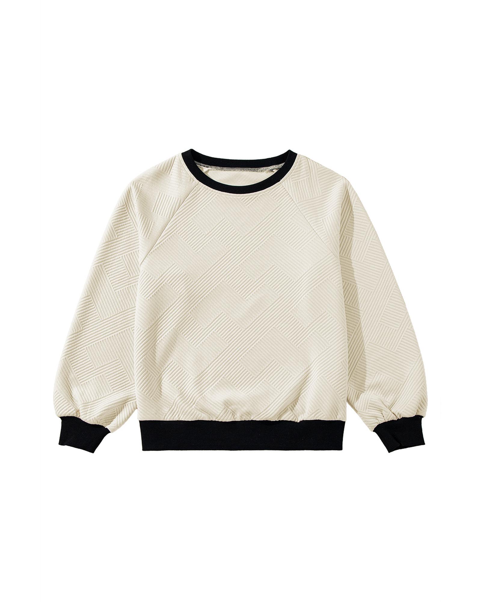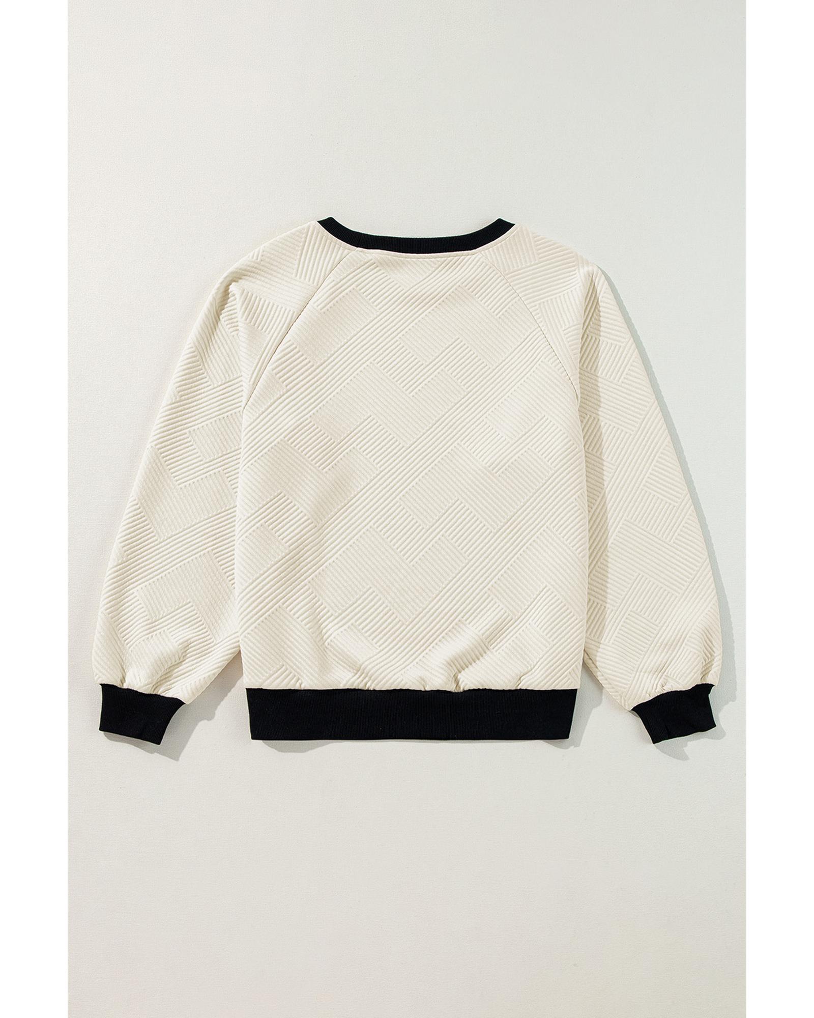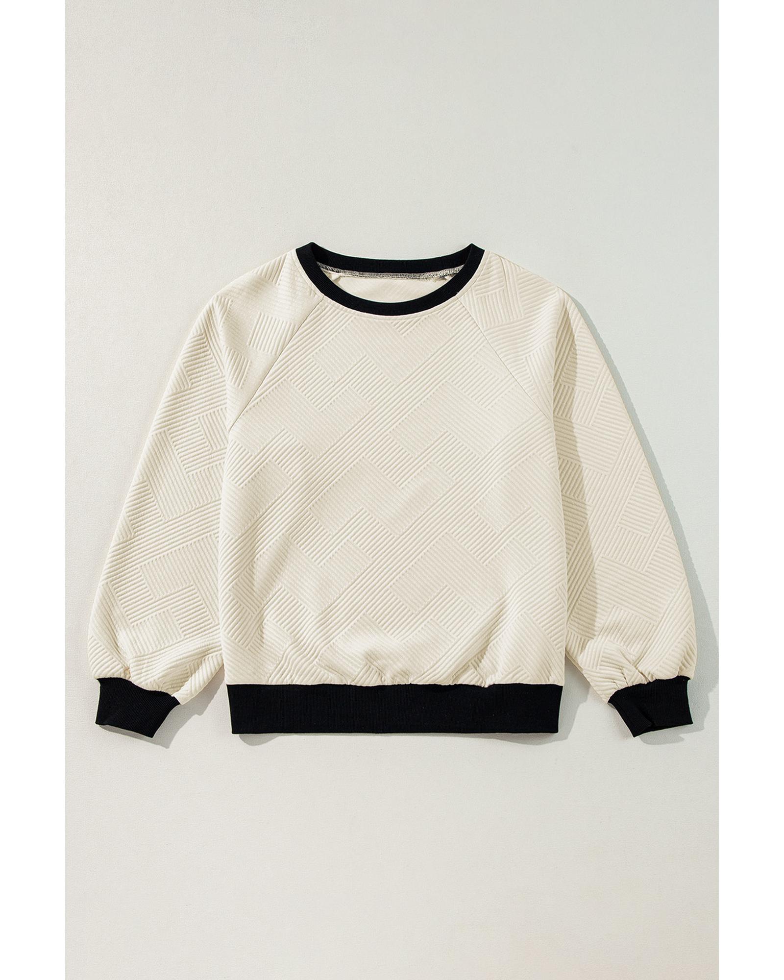 - Jet Stream Color Block Edge Raglan Sleeve Crew Neck Textured Top