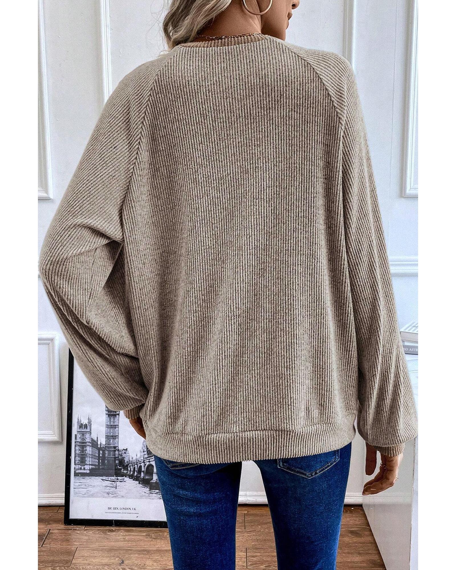 Jet Stream Color Contrast Ribbed Loose Fit Long Sleeve Top – S