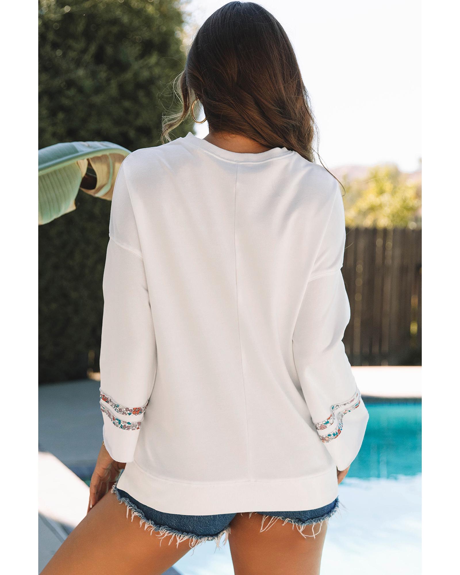 Jet Stream Floral Peace Sign Graphic Drop Shoulder Wide Sleeve Casual Top – M