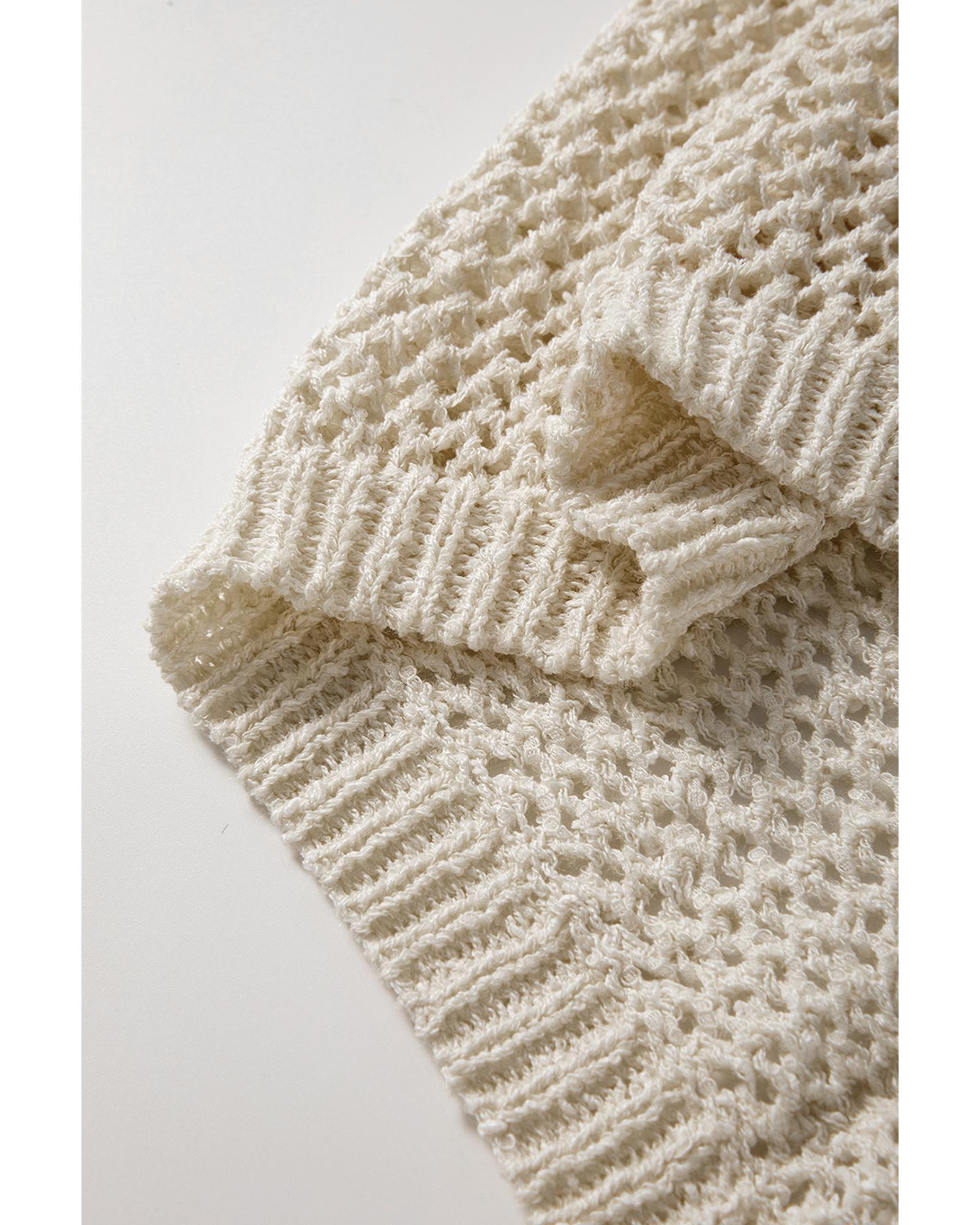 Pale Khaki Scalloped Hem V Neck Crochet Knit Vest - L