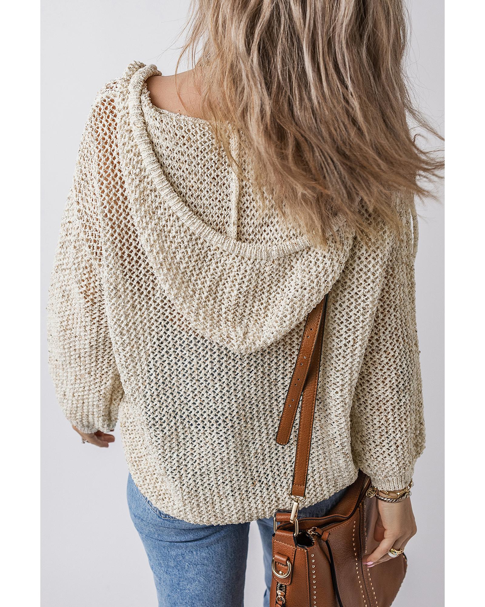 Jet Stream Hollow-out Kangaroo Pocket V Neck Hooded Sweater – M
