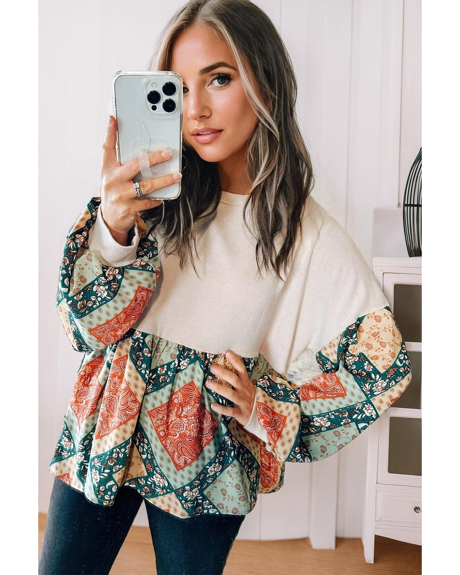 Jet Stream Paisley Geometric Patchwork Crew Neck Loose Fit Top – M