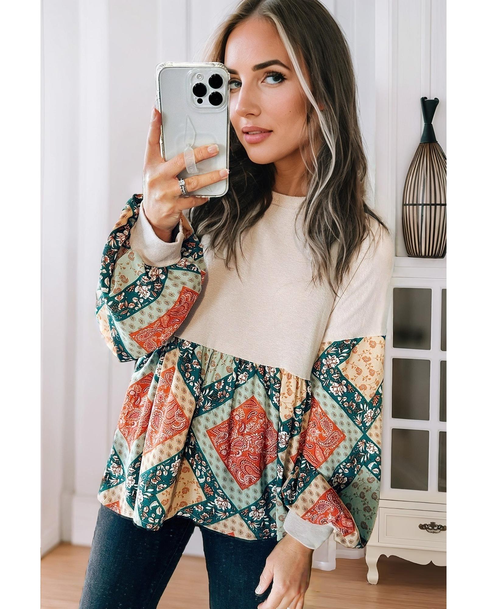 Jet Stream Paisley Geometric Patchwork Crew Neck Loose Fit Top – XL