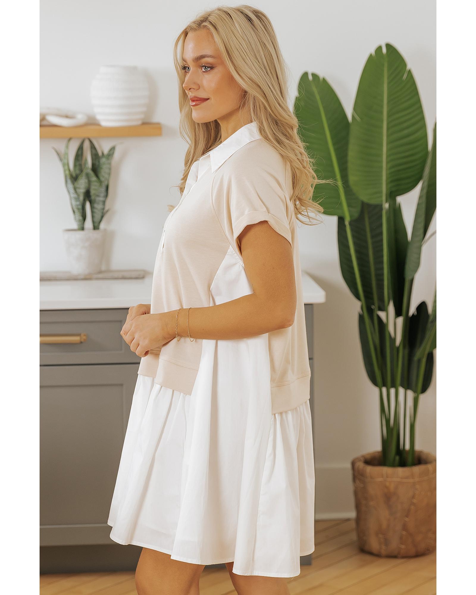 Jet Stream Shirt Collar Buttoned Patchwork Short Sleeve Mini Dress – XL
