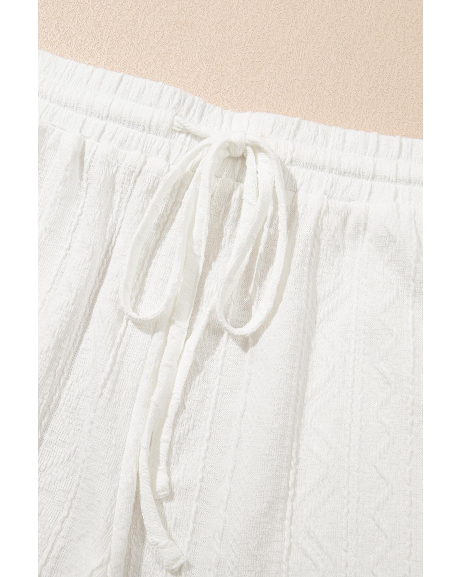 Jet Stream Textured Patched Pocket Short Sleeve Top Drawstring Shorts Set – L