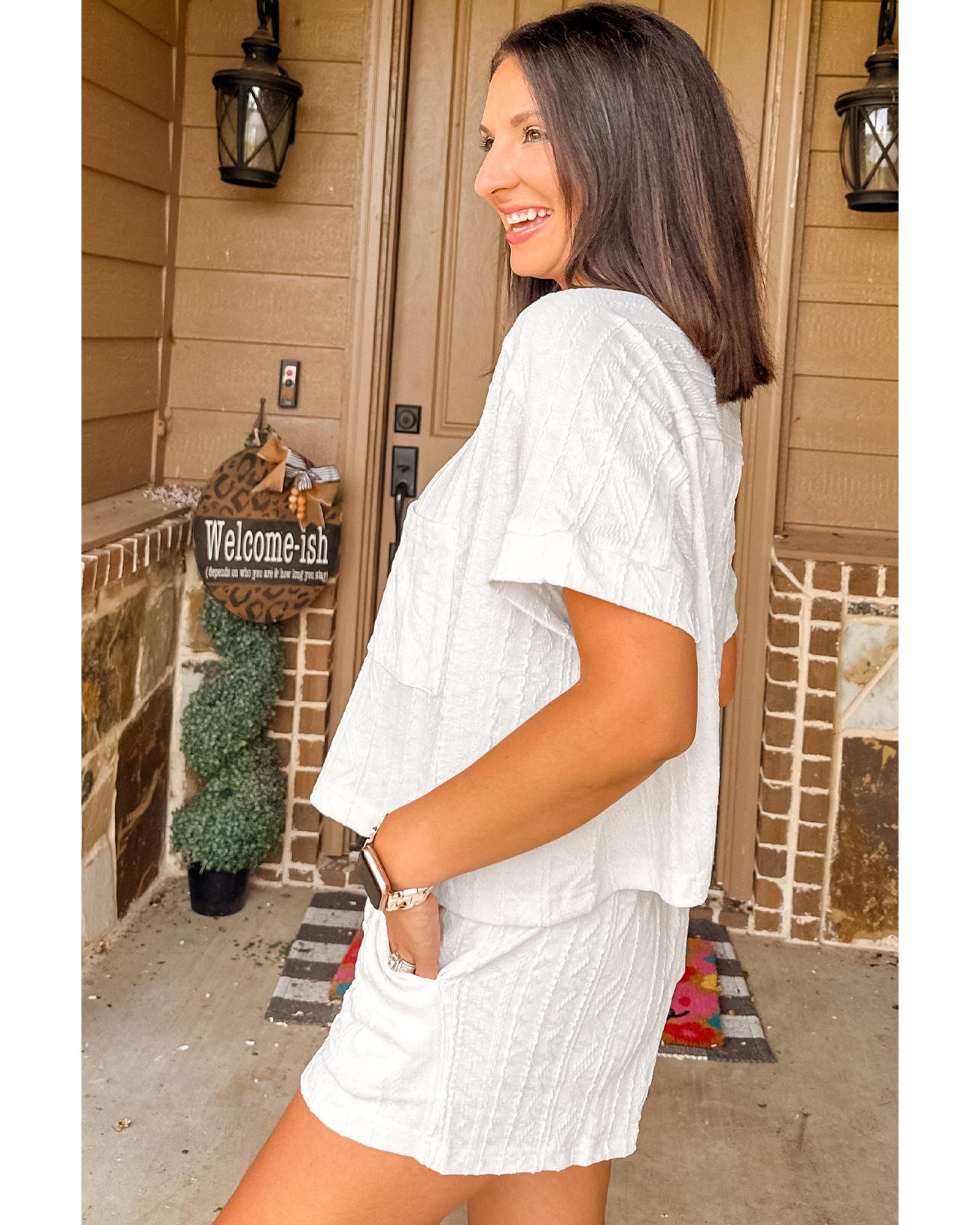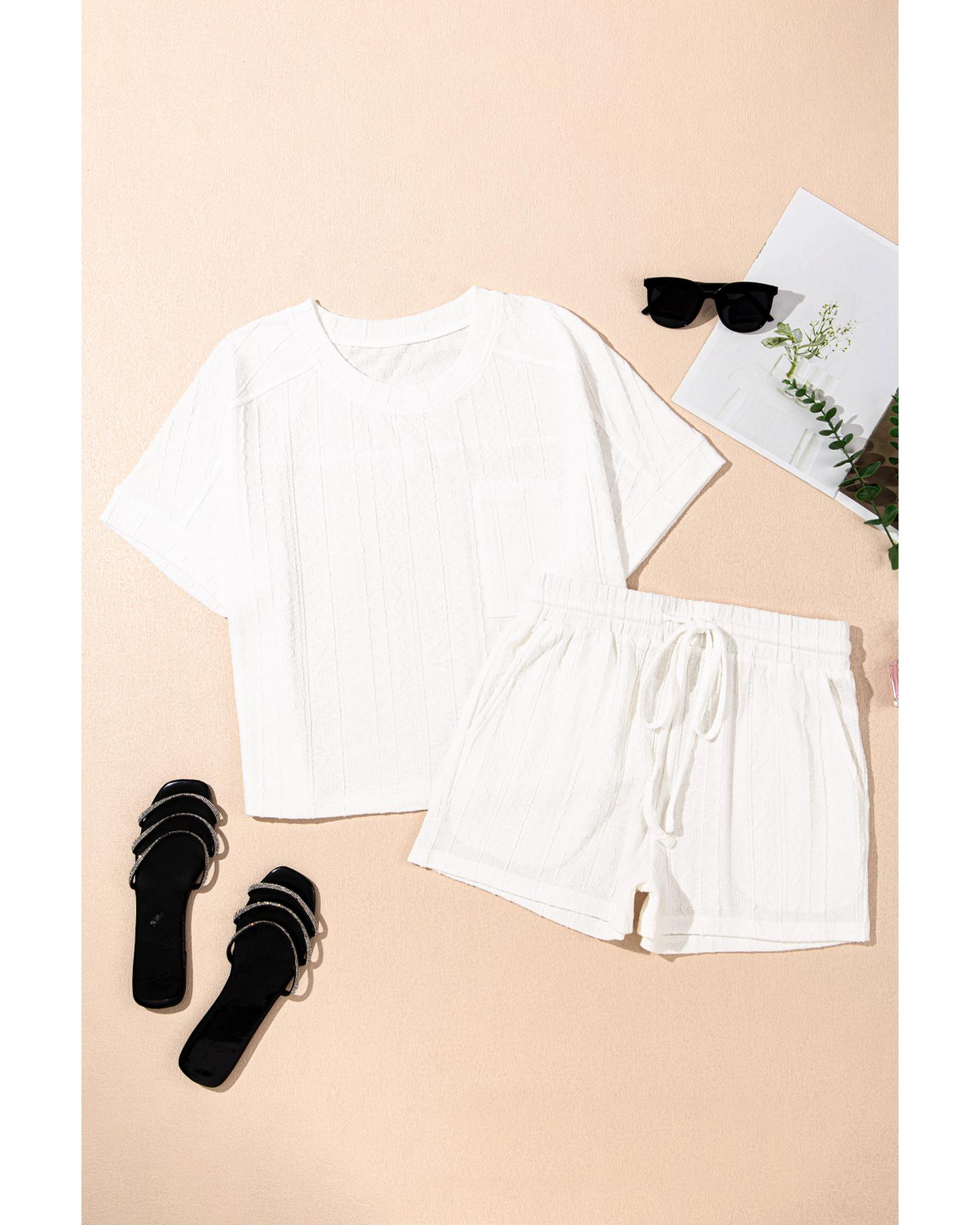 Jet Stream Textured Patched Pocket Short Sleeve Top Drawstring Shorts Set – S