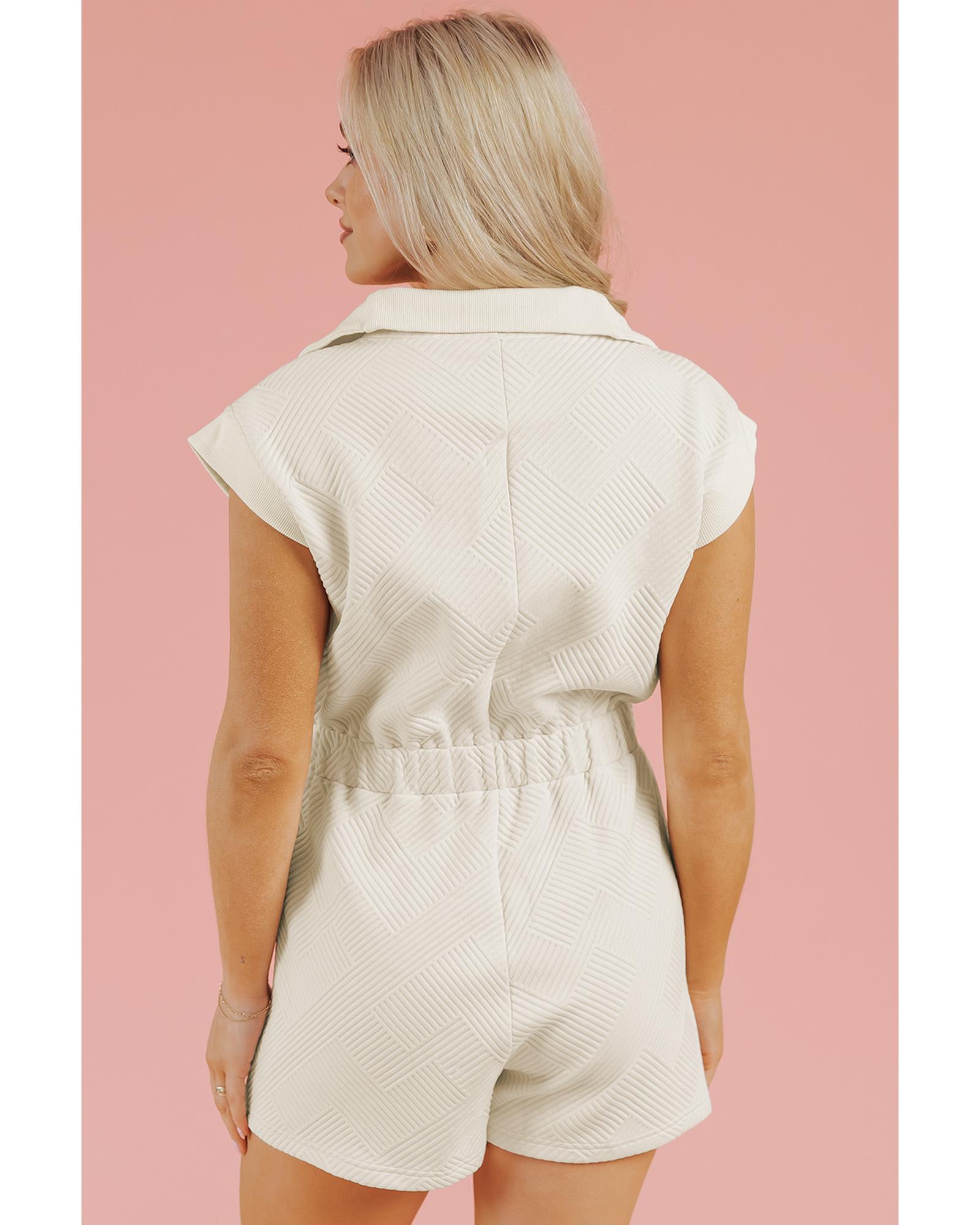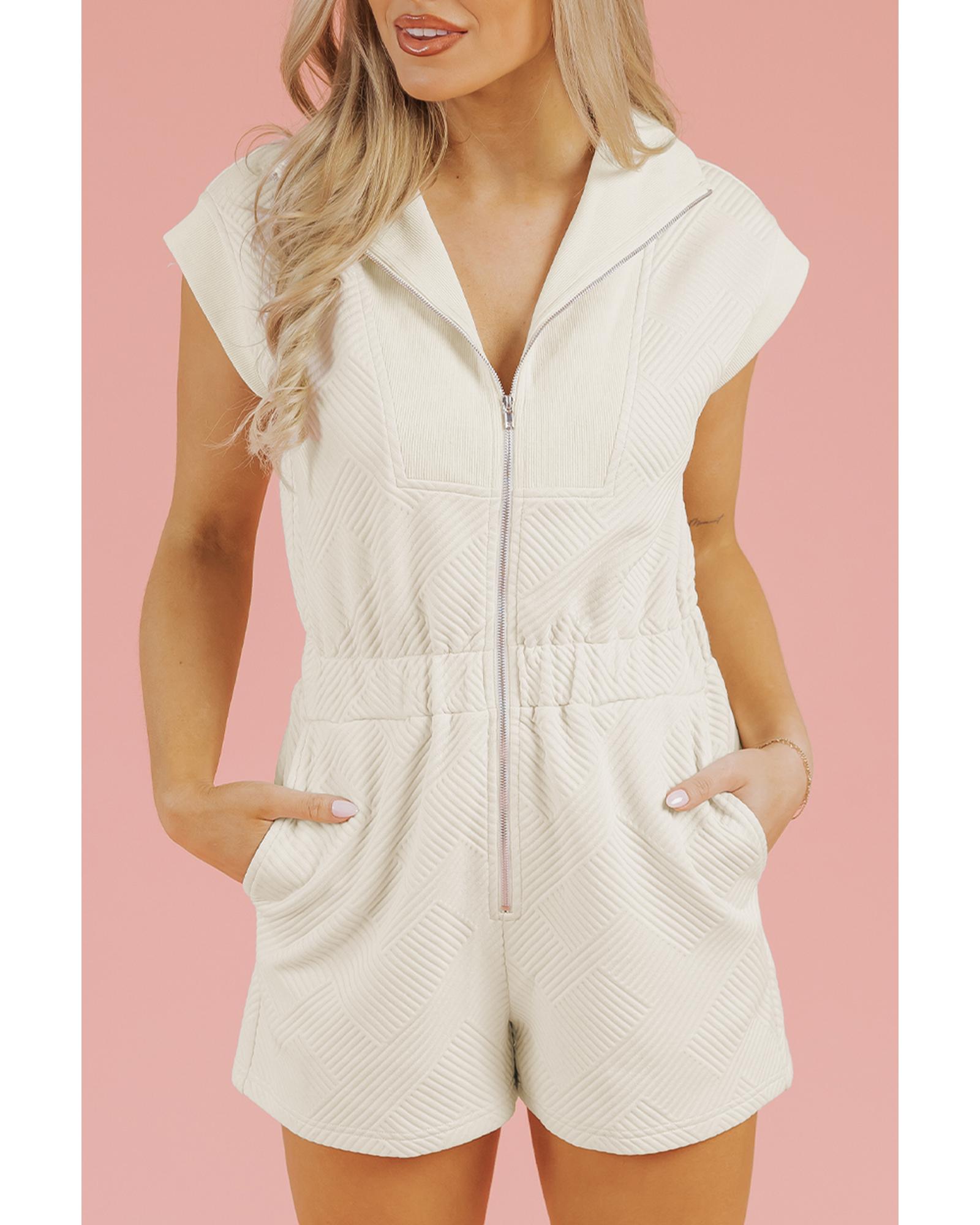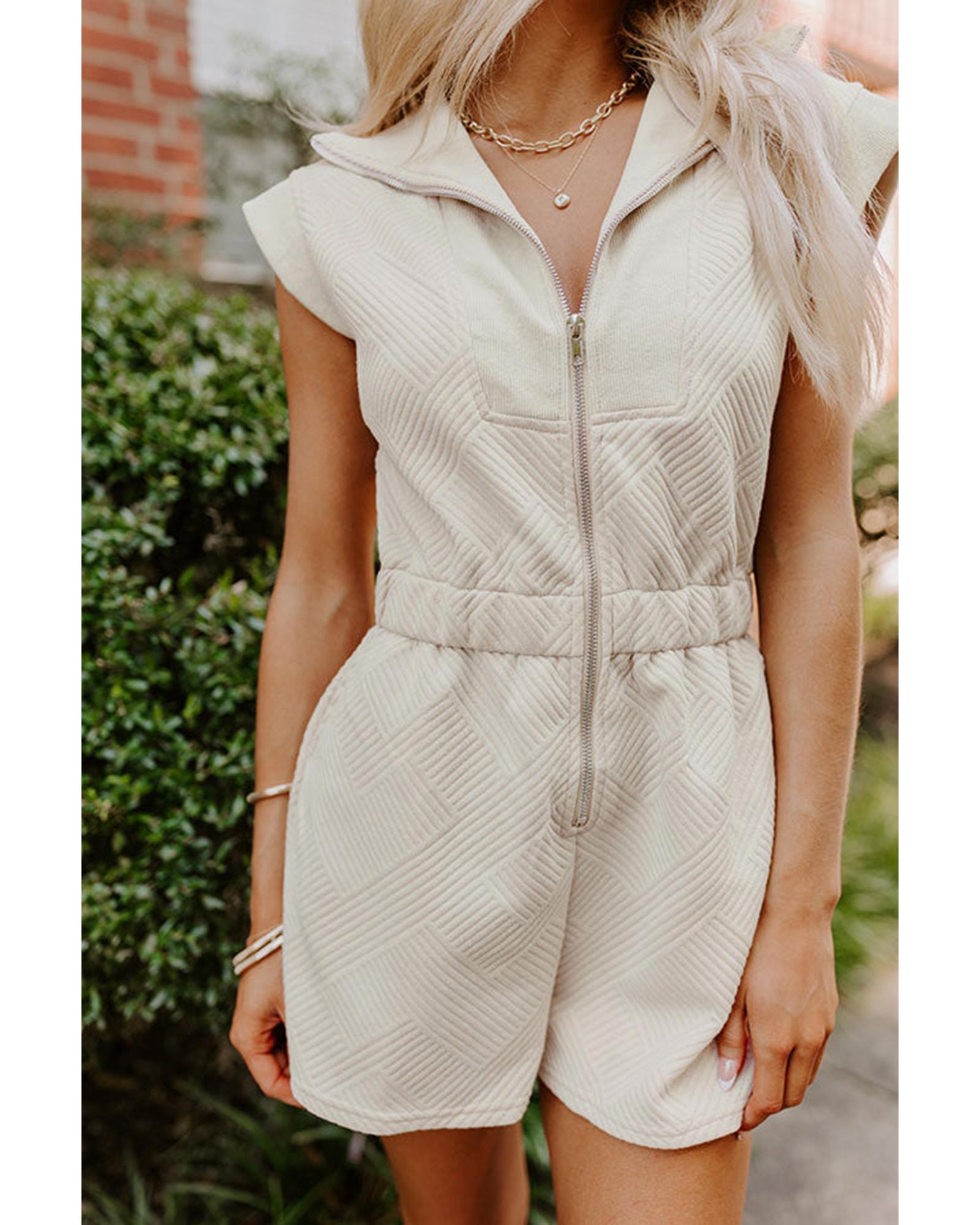 Jet Stream Textured Zipped Front V Neck Collared Casual Romper – L