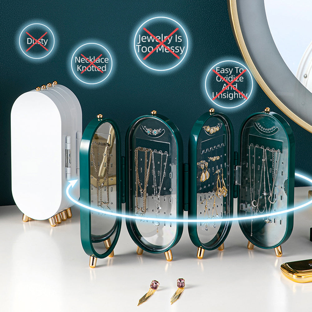 Jewellery Storage Box Earrings Display Necklace Organizer 4 Doors Foldable Screen (Green)