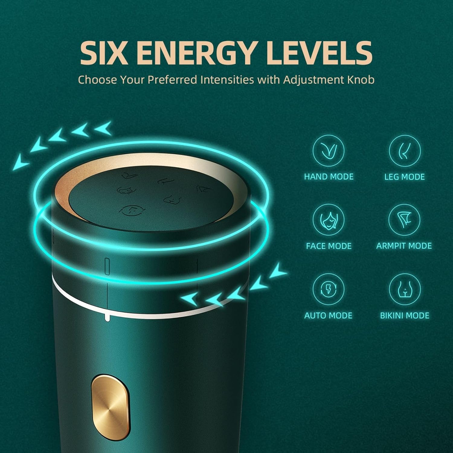3.  Smart Skin Sensor: Equipped with a smart skin sensor, the device automatically adjusts the light intensity based on your skin tone, ensuring optimal safety and effectiveness.