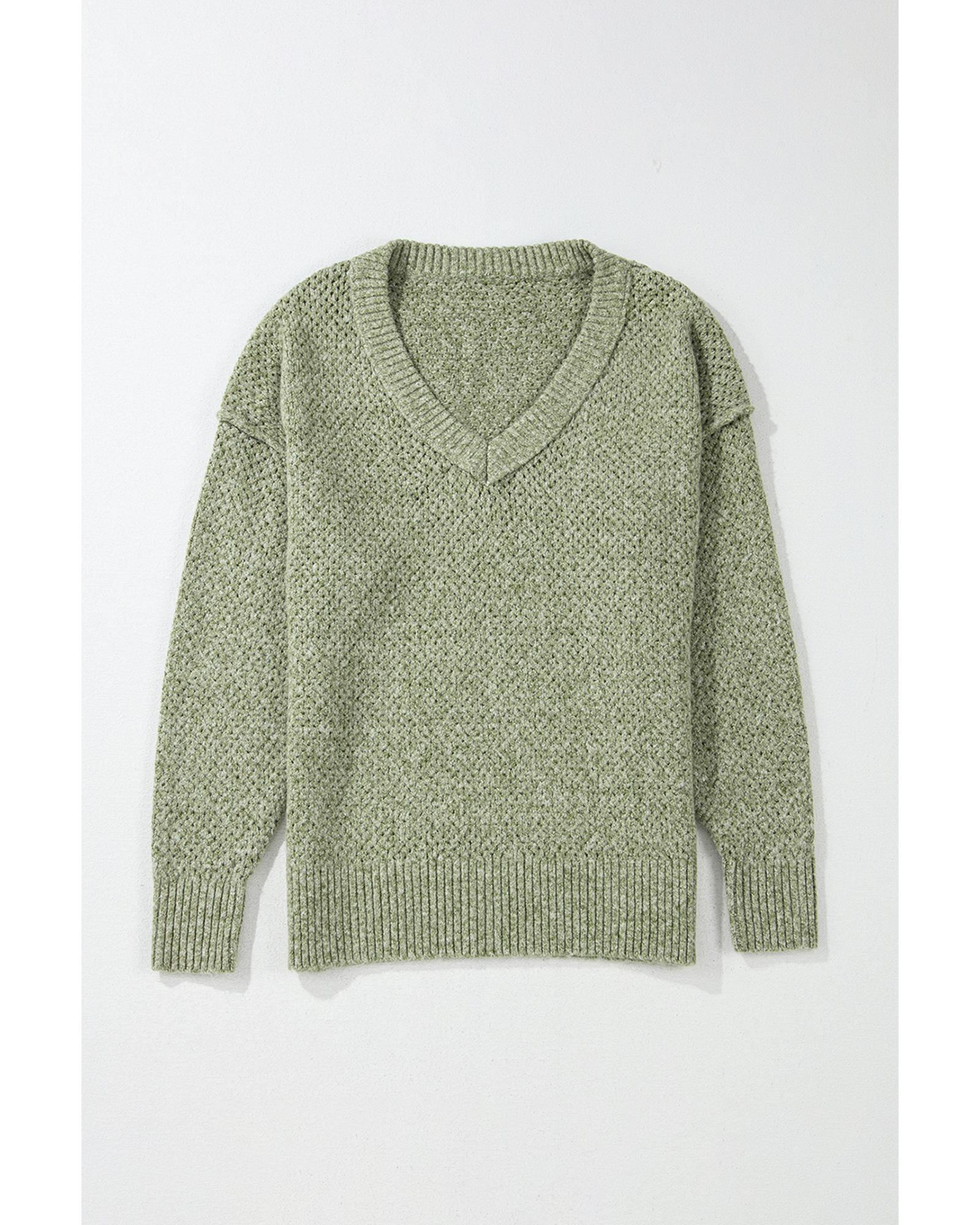 Jungle Green Loose Eyelet V Neck Drop Shoulder Sweater – 2XL