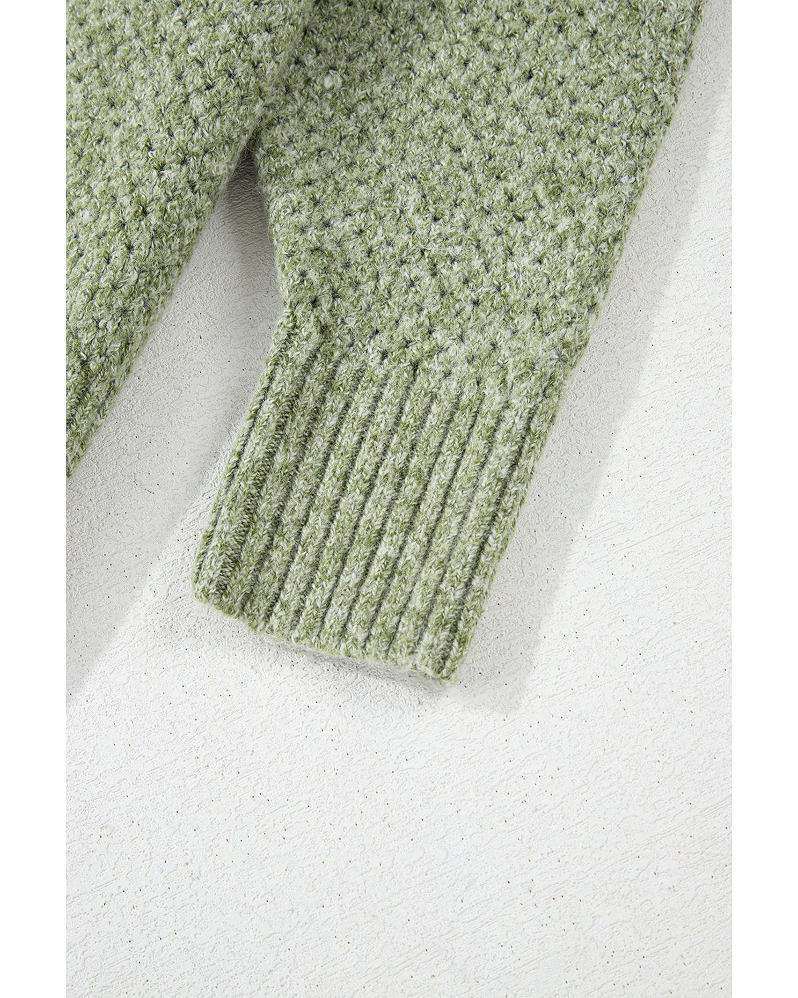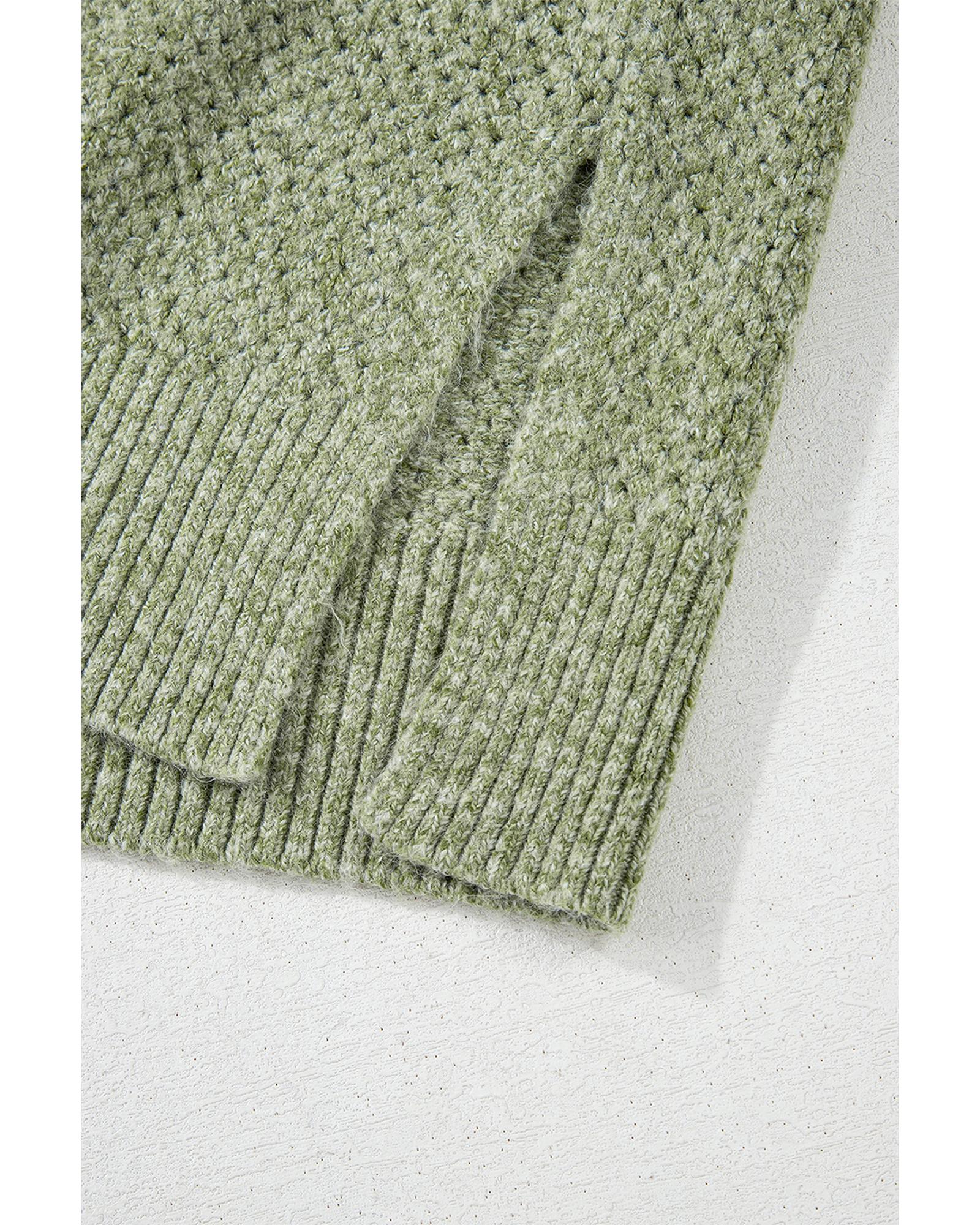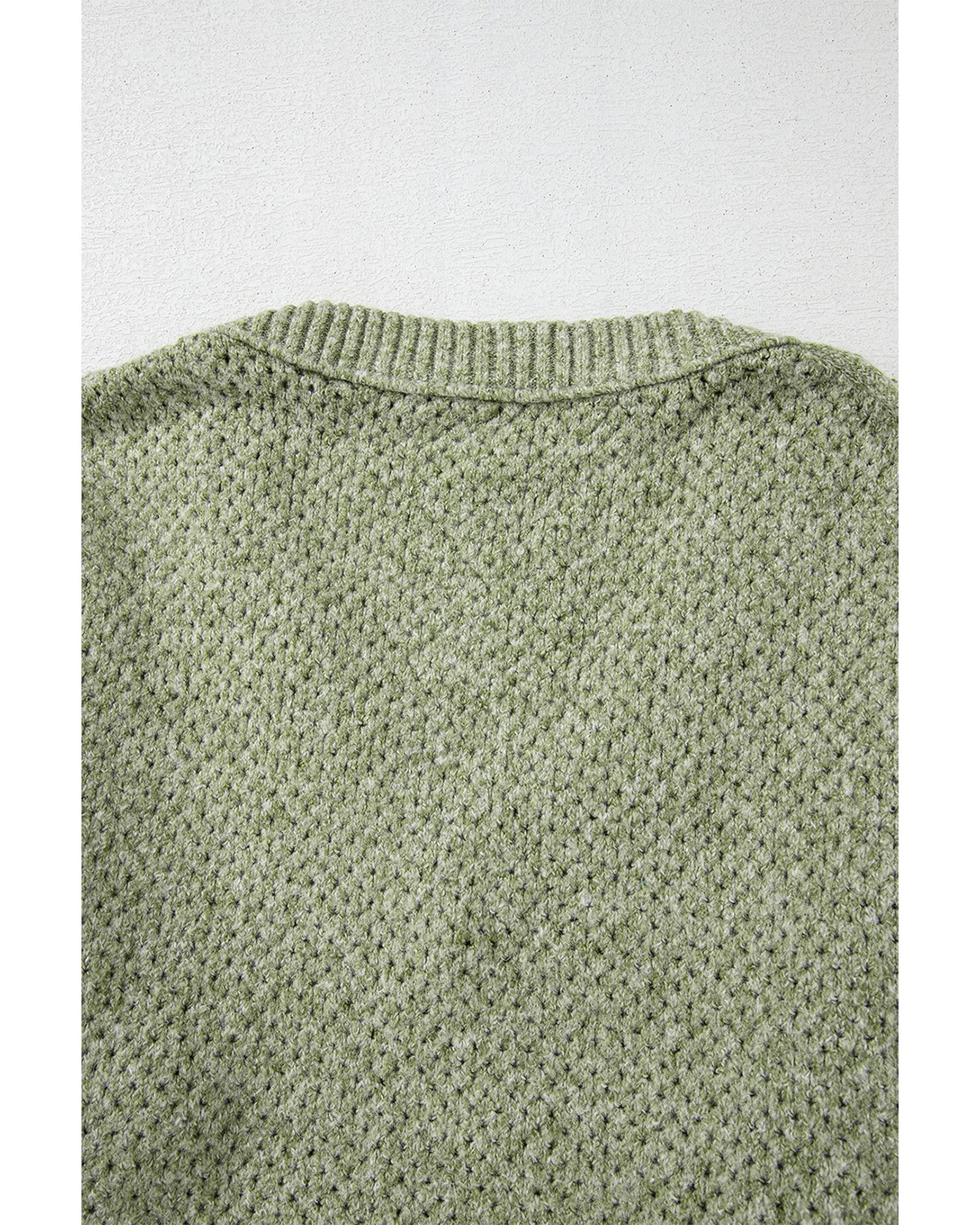Jungle Green Loose Eyelet V Neck Drop Shoulder Sweater – M