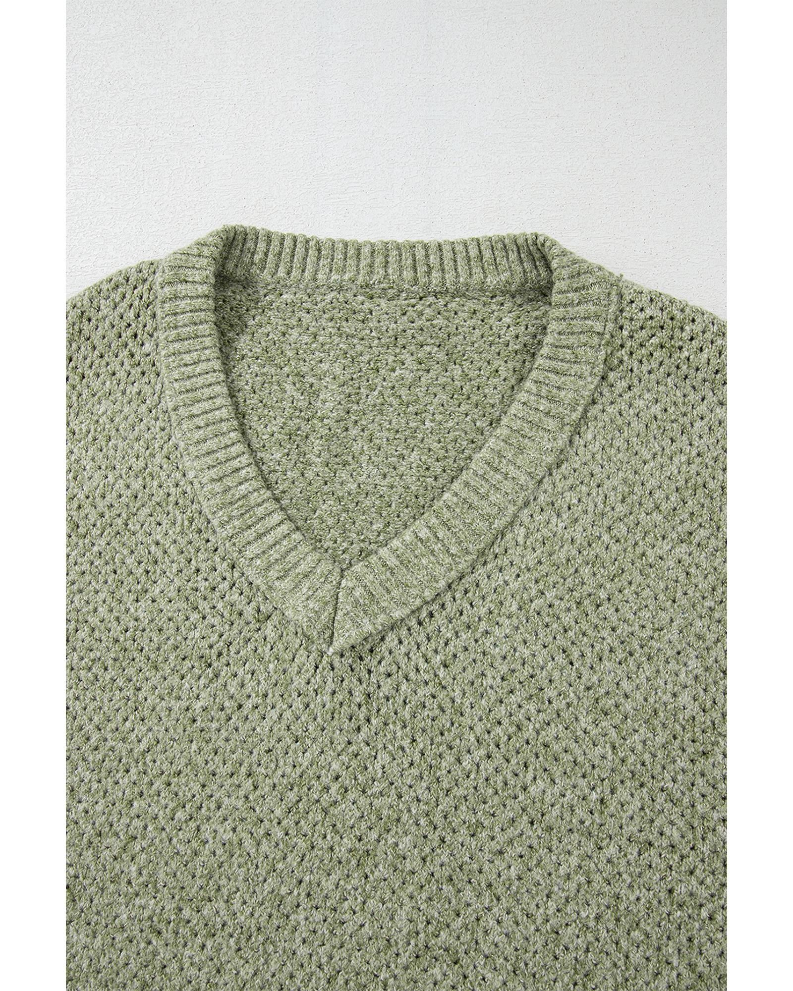 Jungle Green Loose Eyelet V Neck Drop Shoulder Sweater – S