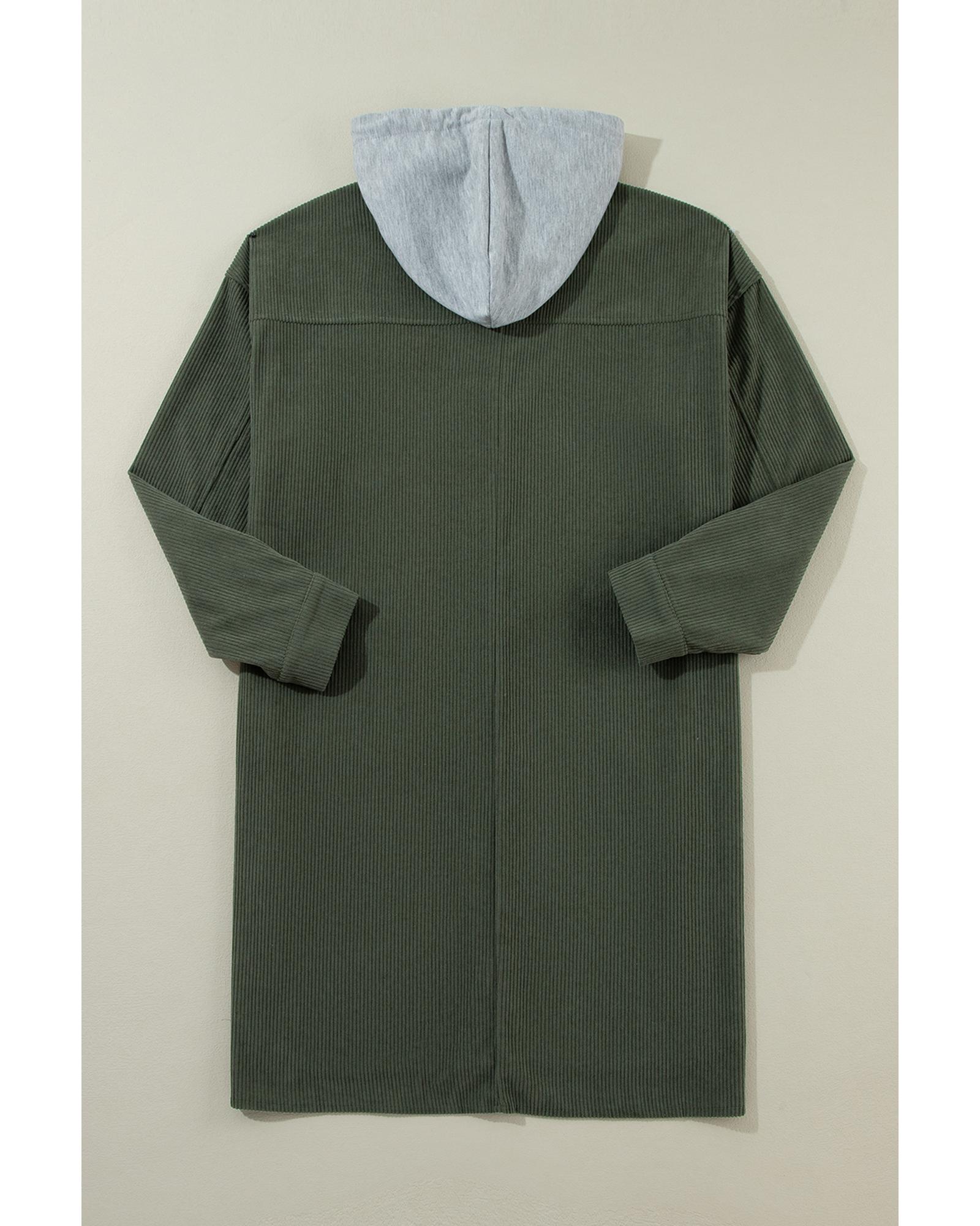Jungle Green Oversized Corduroy Contrast Hooded Shacket - S