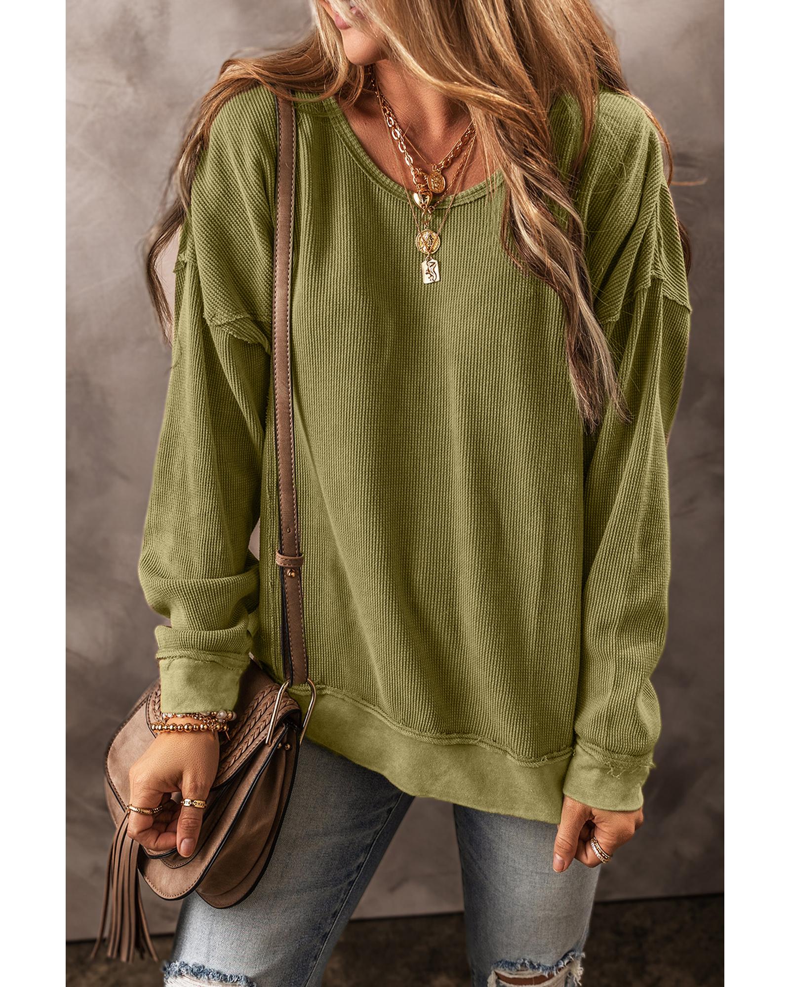 Jungle Green Textured Seamed Drop Sleeve Sweatshirt – M