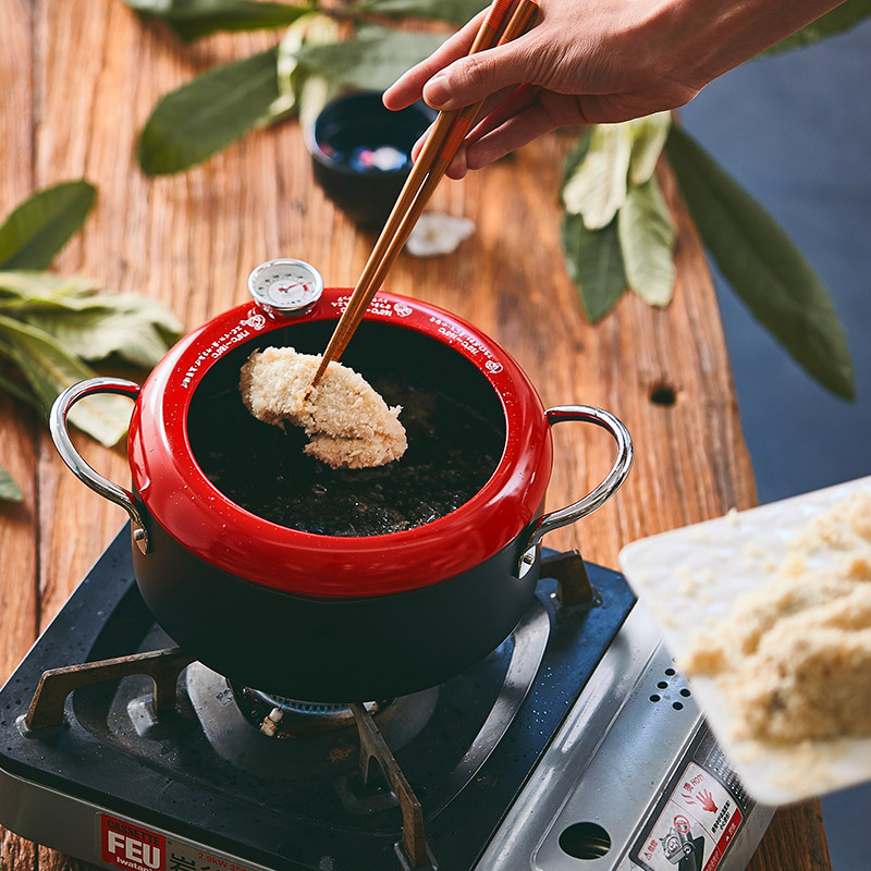 Justcook Kitchen Deep Fryeris made of iron with an uncoated surface, it is more healthy and safe. There is a detachable oil drainage rack inside the lid and a deep stainless steel fry thermometer, it is easy for draining and keep oil fall in the pot and convenient to watch and real-time control the oil temperature.