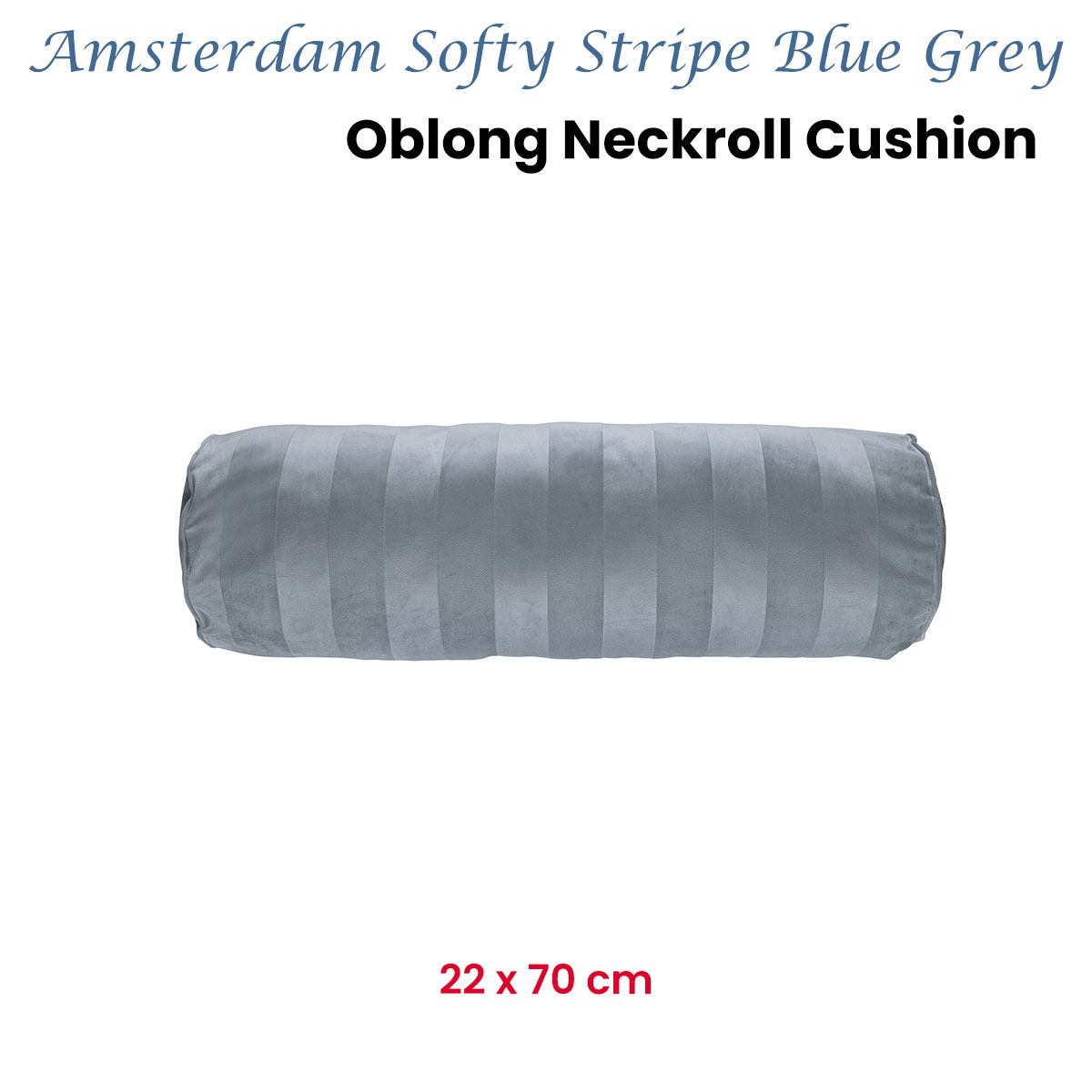 KAAT Amsterdam Softy Stripe Blue Grey Oblong Neckroll Filled Cushion 22cm x 70cm