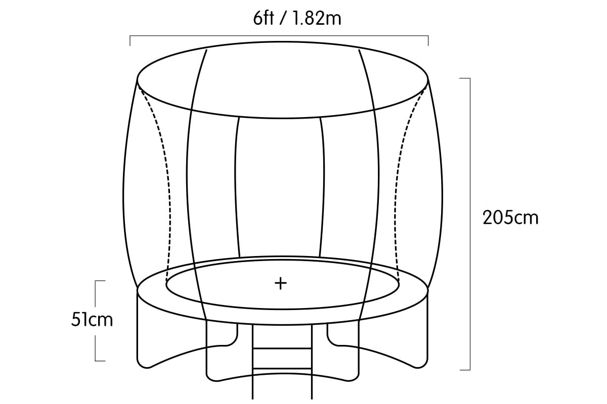 Basketball set! This trampoline is supplied with a basketball kit to add even more fun for the kids. This includes the backboard and ring, net, ball, and pump!