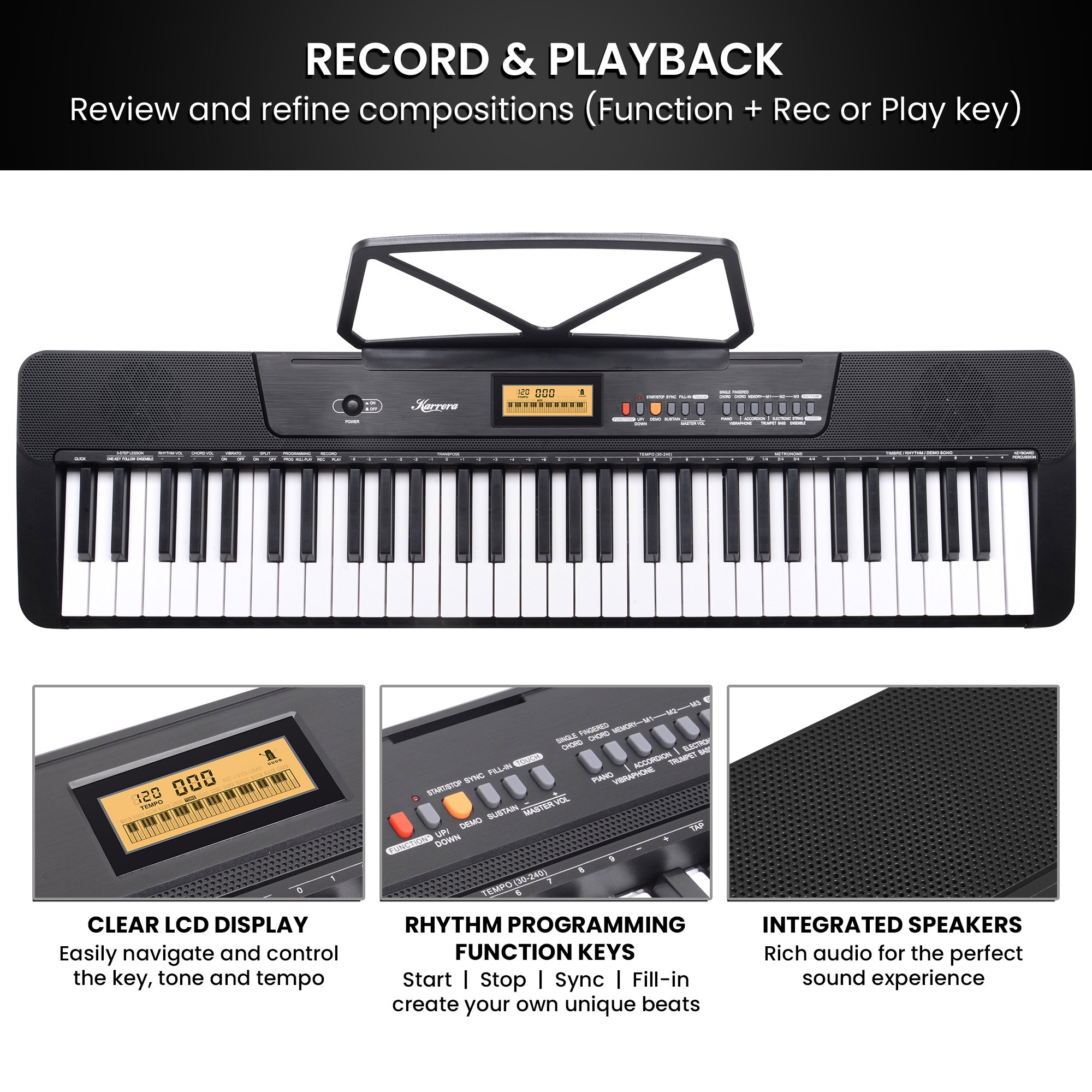 Karrera 61-Key Electronic Keyboard with LCD and Touch Response in Black CHJ-291