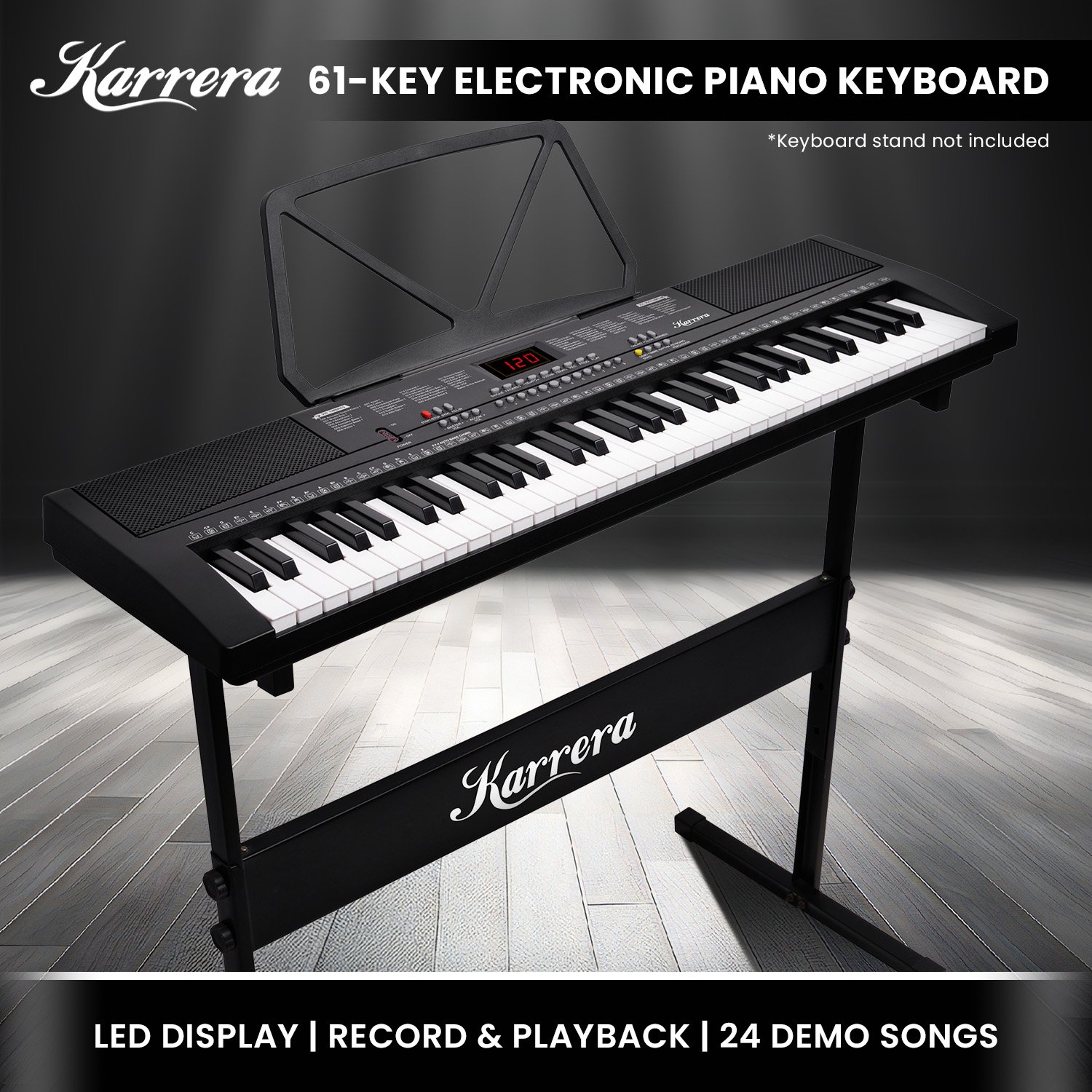 Refine your musical talents with the Karrera 61-Key Electronic Keyboard, a dynamic instrument crafted to spark your artistic flair. Immerse yourself in a repertoire of 24 mesmerizing demonstration songs that can serve as your muse, or take control and sculpt your distinctive melodies using the keyboards impressive sustain and vibrato effect. This keyboard offers a wide sonic palette, boasting over 255 timbres and 255 rhythms for you to explore, experiment and discover your unique musical identity.
