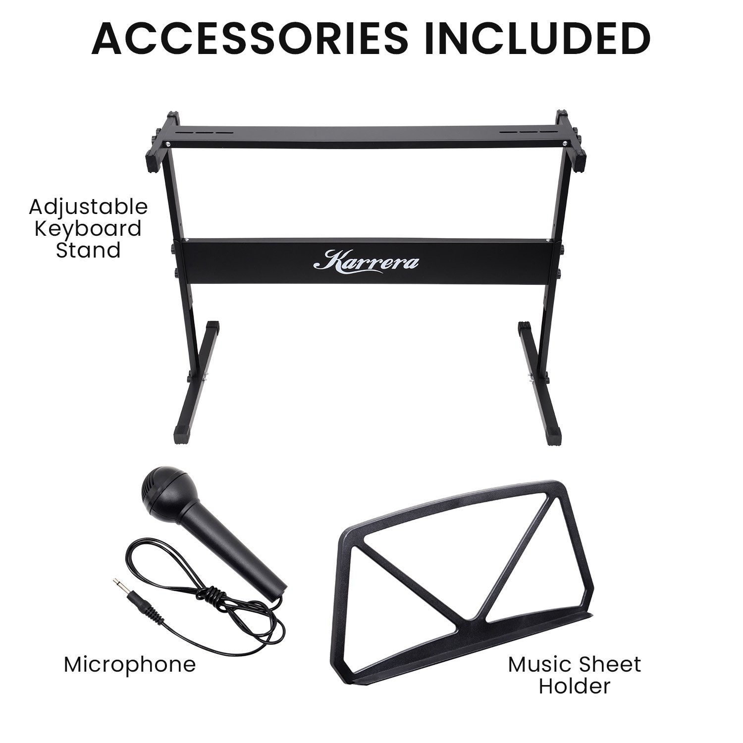 - Microphone and music sheet holder included